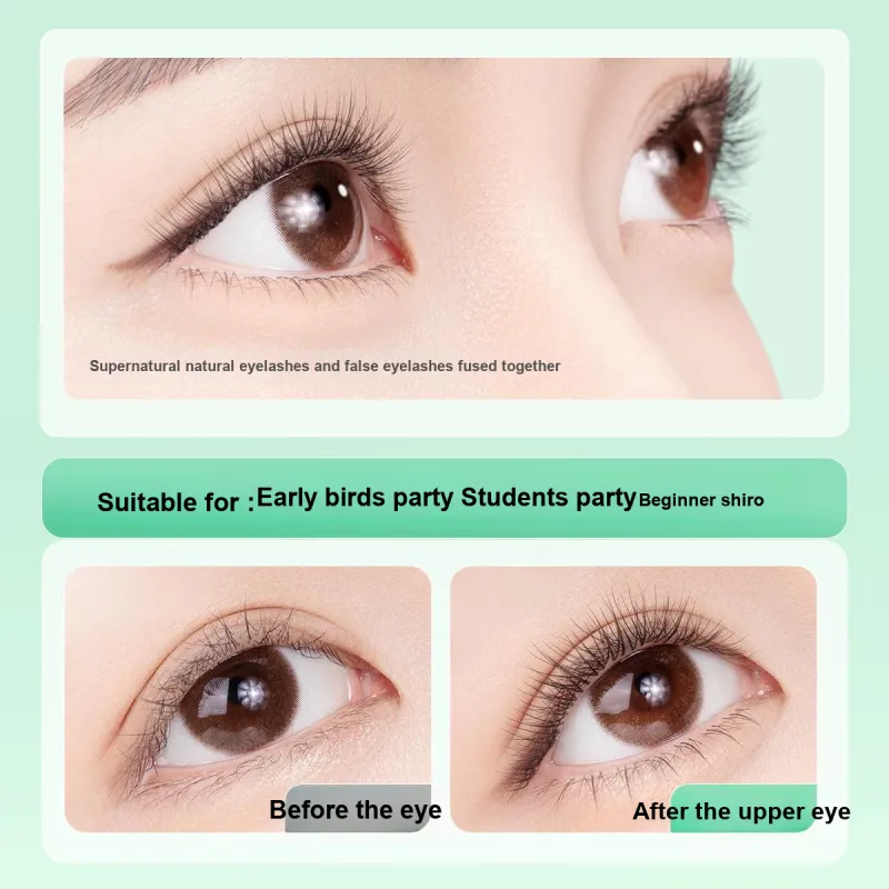 Клей-Бесплатно 2 коробки [Верхние и нижние ресницы] Естественный Маленький Солнечный свет + Маленькое Пламя