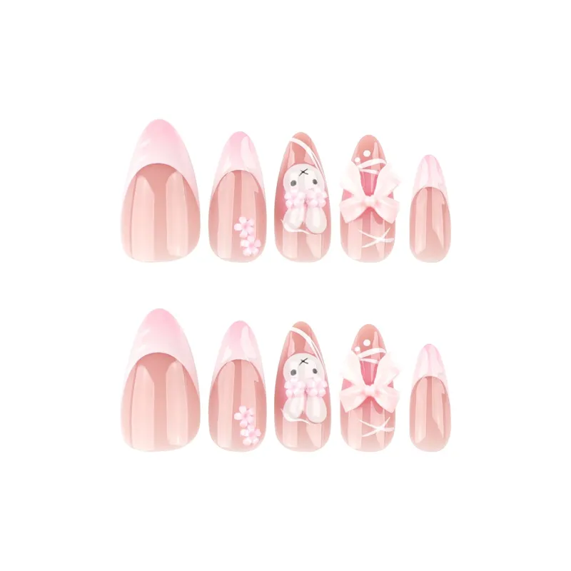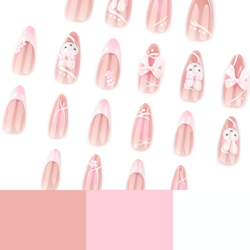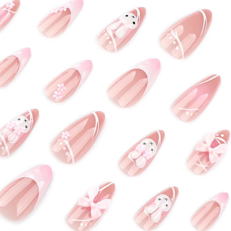 OEING False Nail Миндальный Белый Розовый Смужка Милый