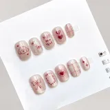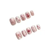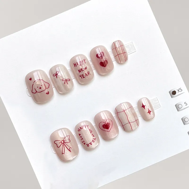 OEING False Nail Короткий Круглый Розовый Смужка Кошачий глаз