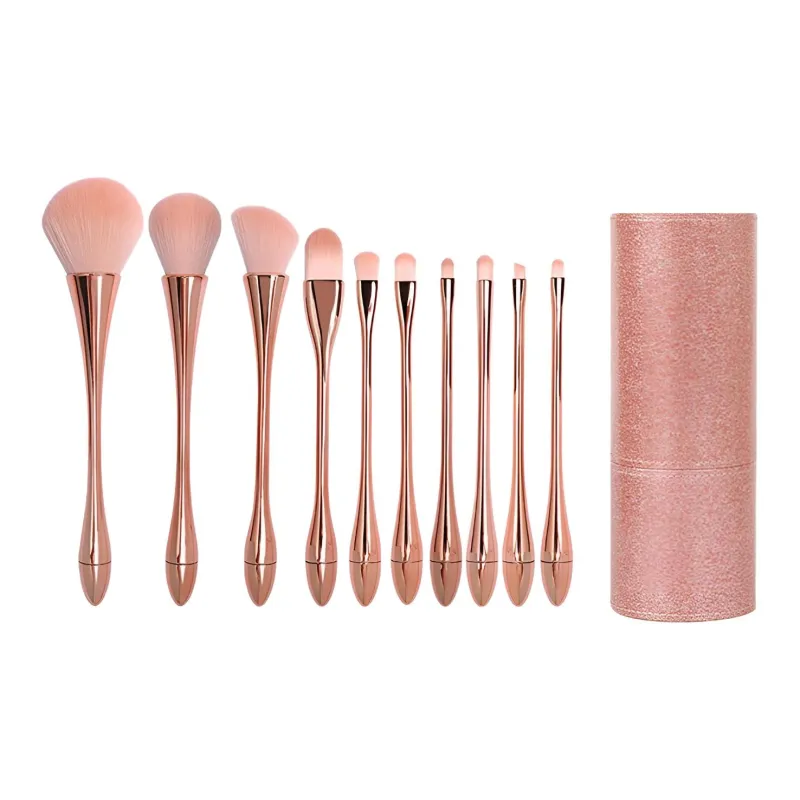 Розовое золото, 10 шт. + черная ручка для кисти