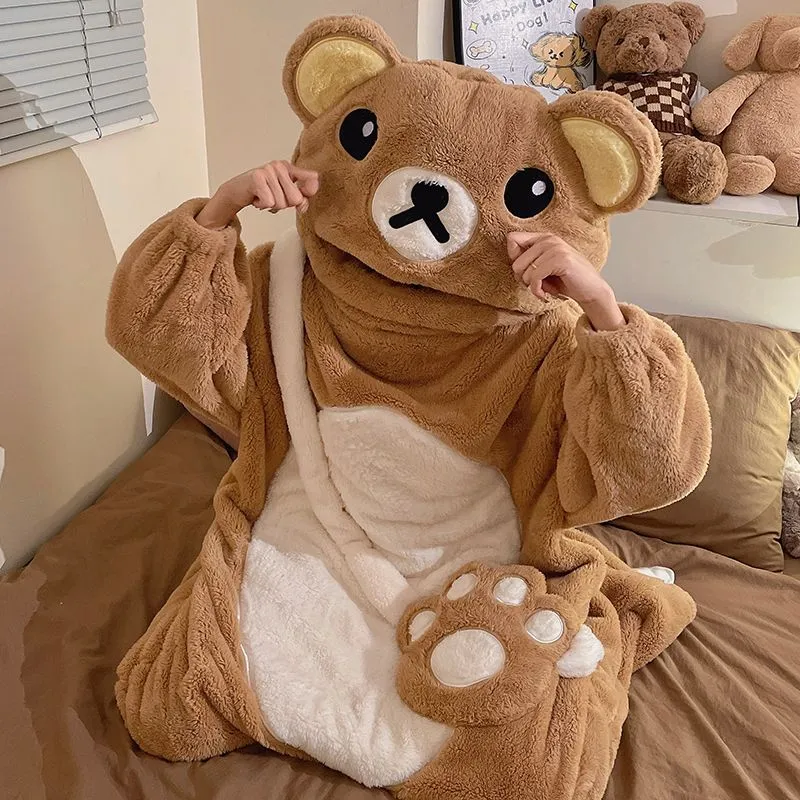 OEING Хаки Медведь Женские Банные халаты