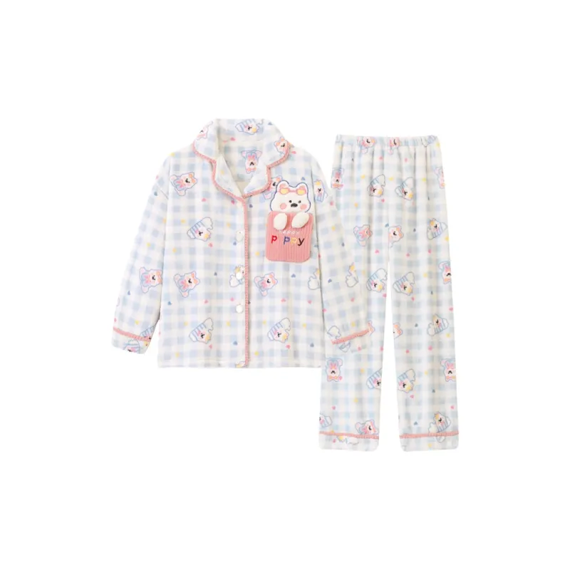 OEING Синий Сетка Вест-хайленд Комплекты одежды Женские Пижамные комплекты
