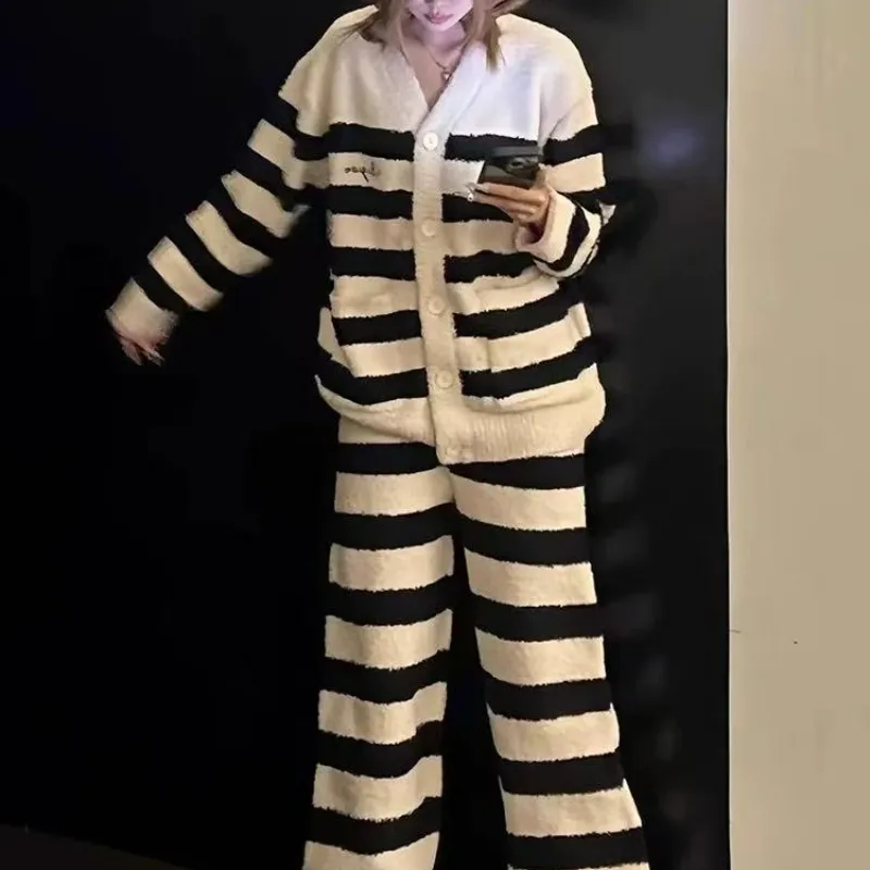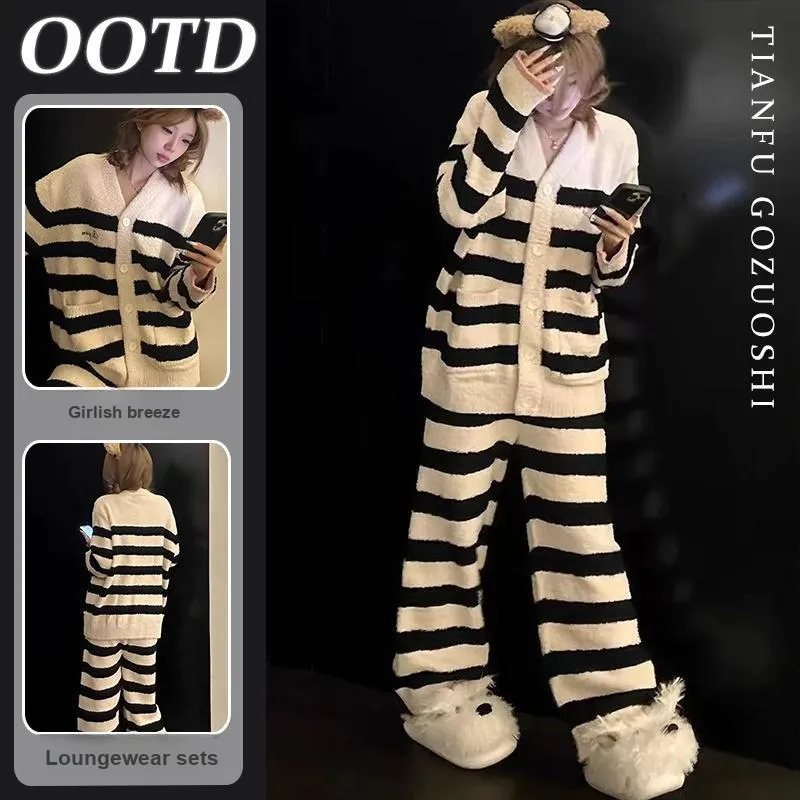 OEING Черно-белые полосы [Комплекты одежды] Женские Пижамные комплекты