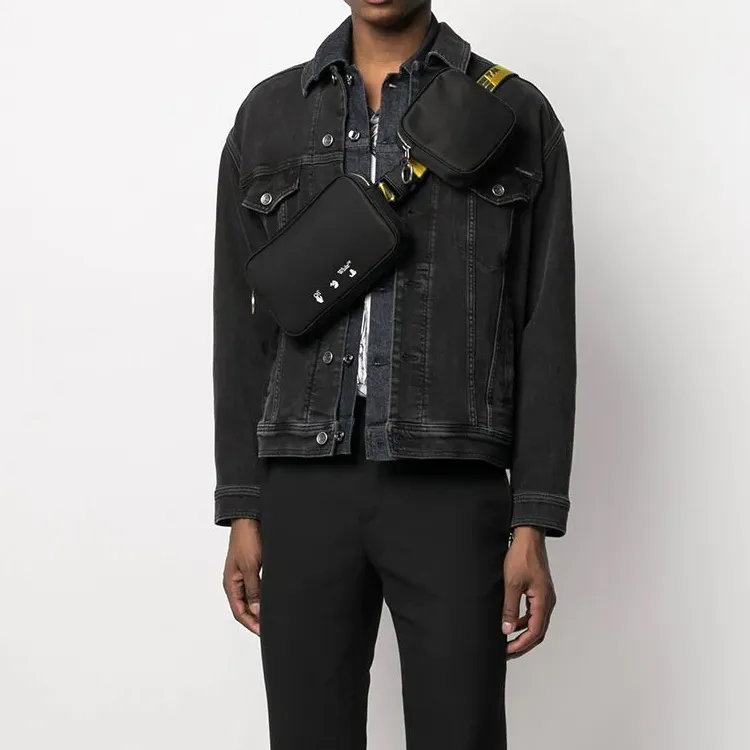 OFF Белый Кожа Мелочь Кошелек Через плечо Бананка Мужской Черный