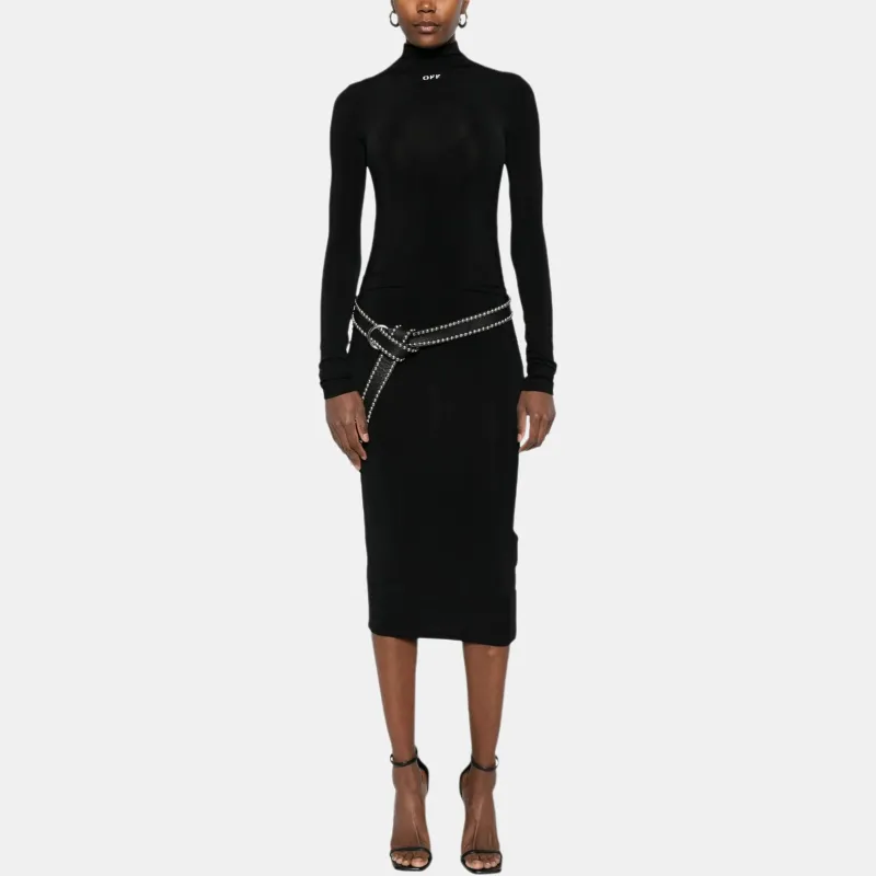 Off Белое длинное платье с длинными рукавами женское