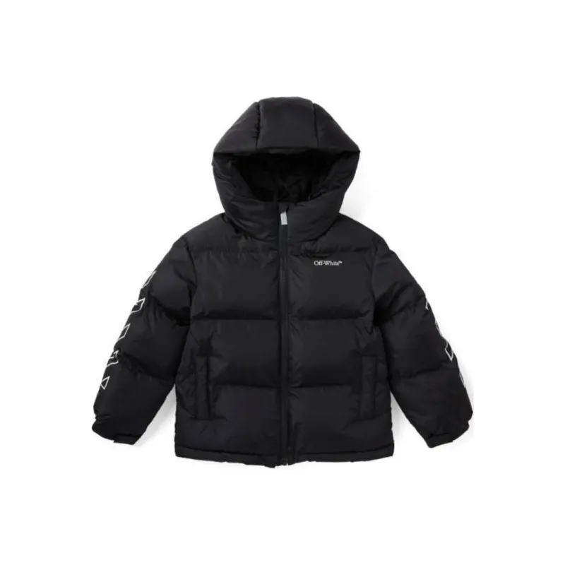 Off Белый Хлопковый пуховик Черный Детский