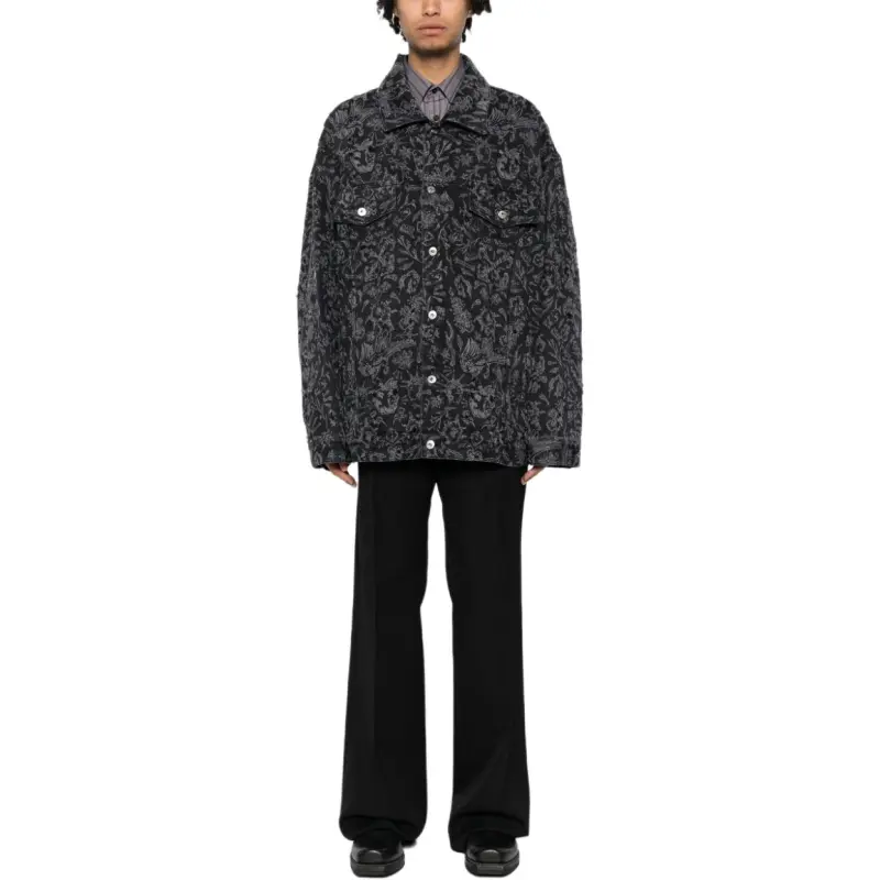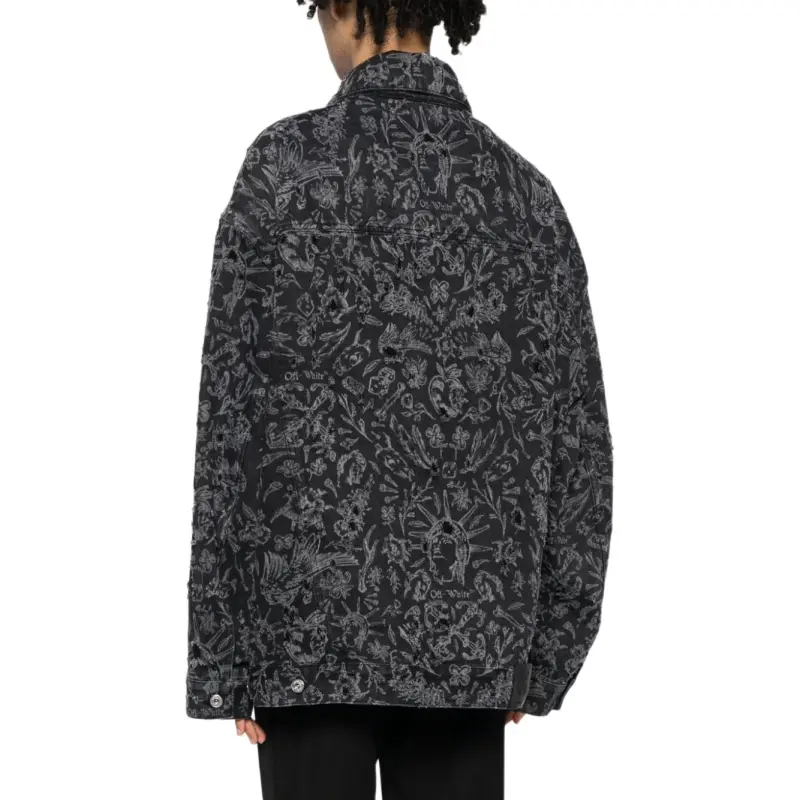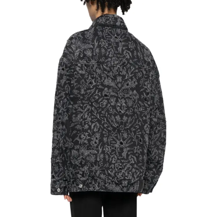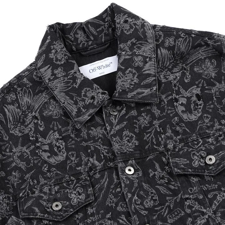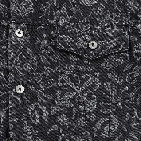 Off Белый деним куртка стандартный мужской черный