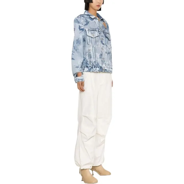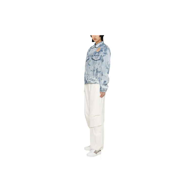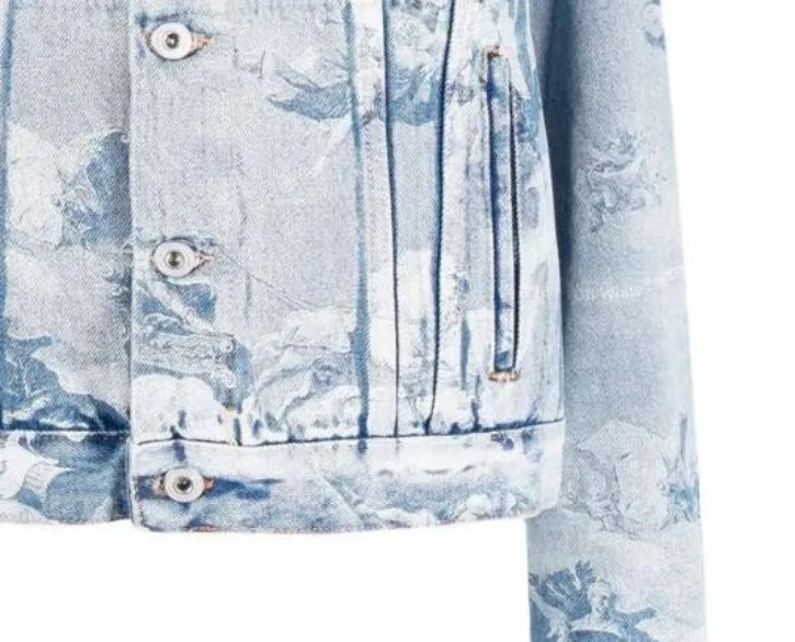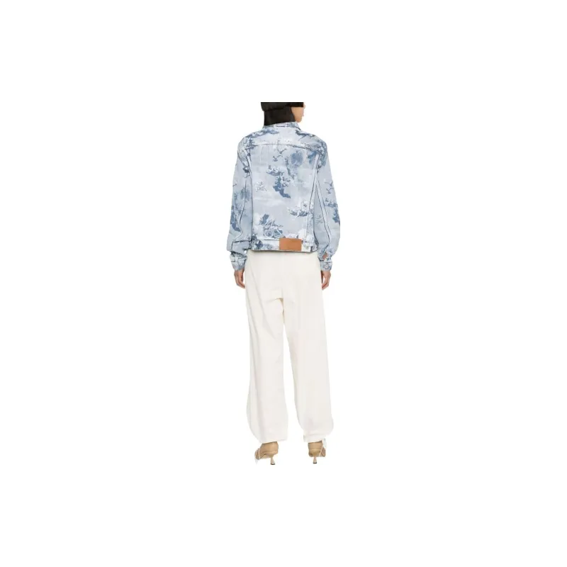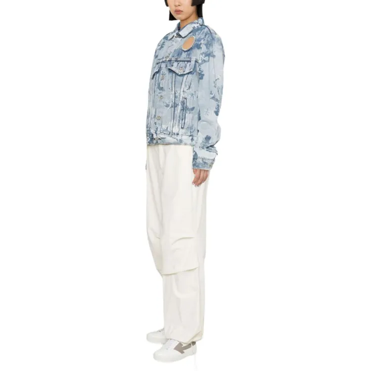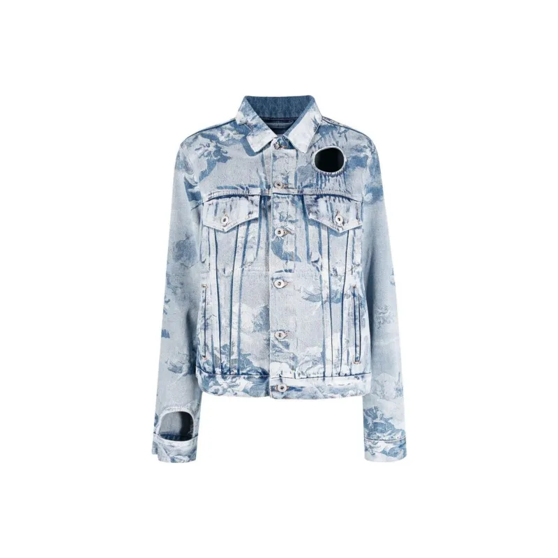 Off Белый деним куртка обычный крой женский светло-синий