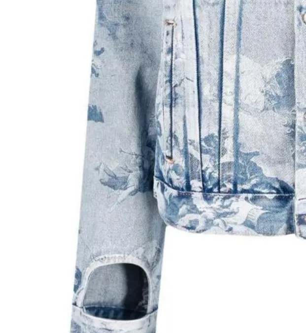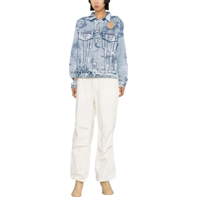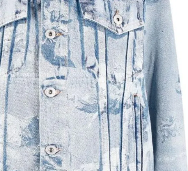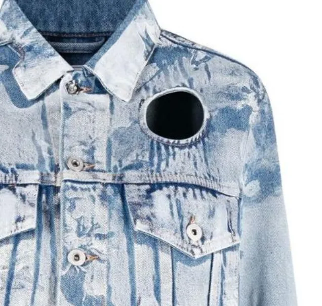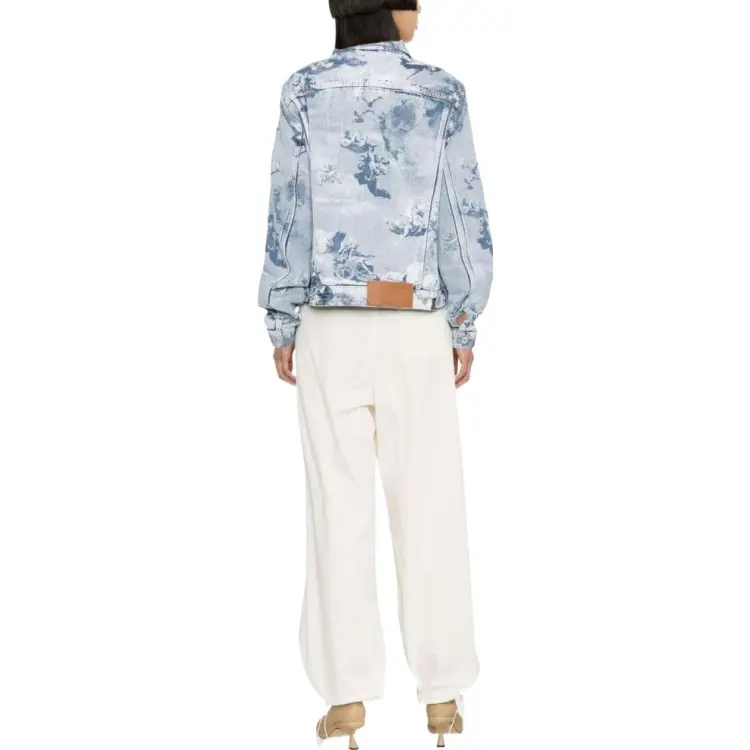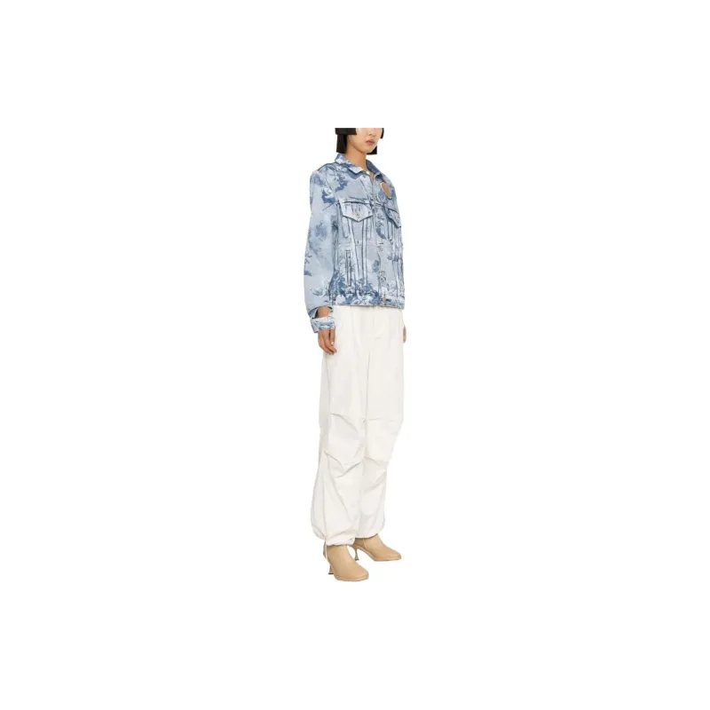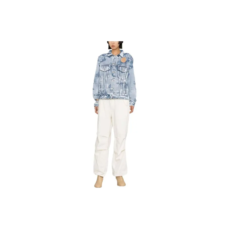 Off Белый деним куртка обычный крой женский светло-синий