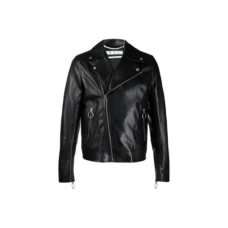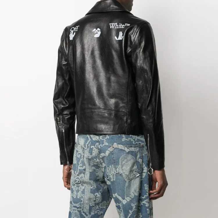 Off Белый SS21 Черный Мужские Кожаные Куртки