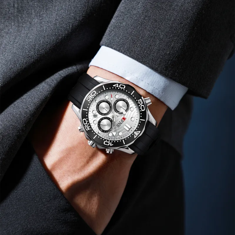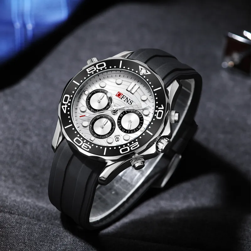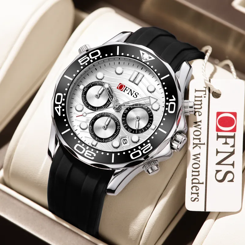 OFNS Submariner Collection Бизнес Офисный стиль Кварцевый механизм Силиконовый ремешок Часы Мужские Белый циферблат