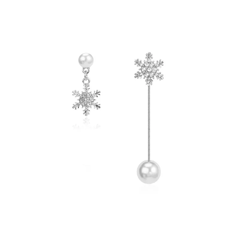 Асимметричные серьги-гвоздики в форме снежинки
