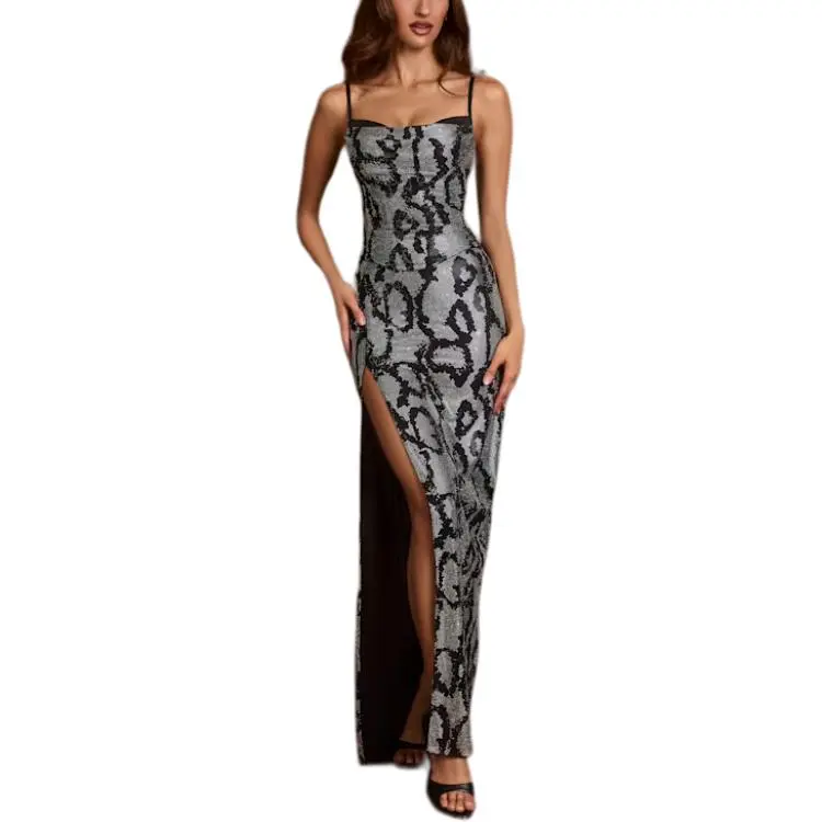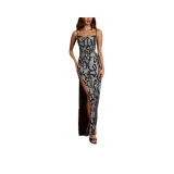 OH POLLY Embellished Peekaboo Когтеточка Платье в Серебряном Змеином Стиле Slip Платье Женское