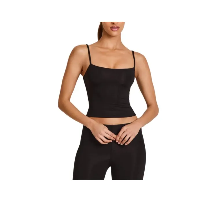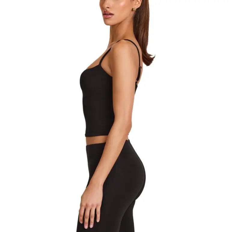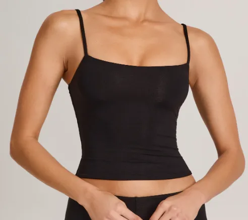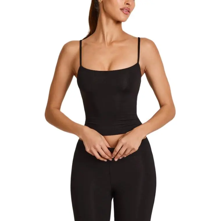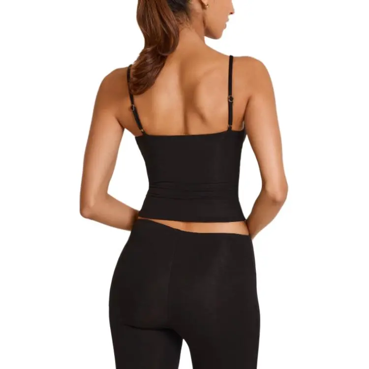 OH POLLY Модал Scoop Воротник Майка в Черном Топе с Бретелями Женские