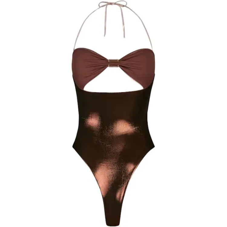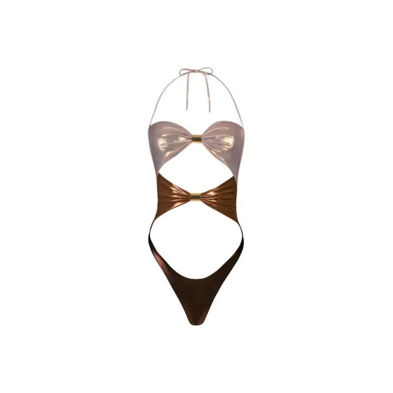 OH POLLY Панелированный купальник с вырезами в бронзе и золотом купальник для женщин