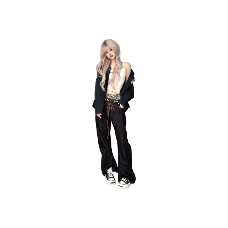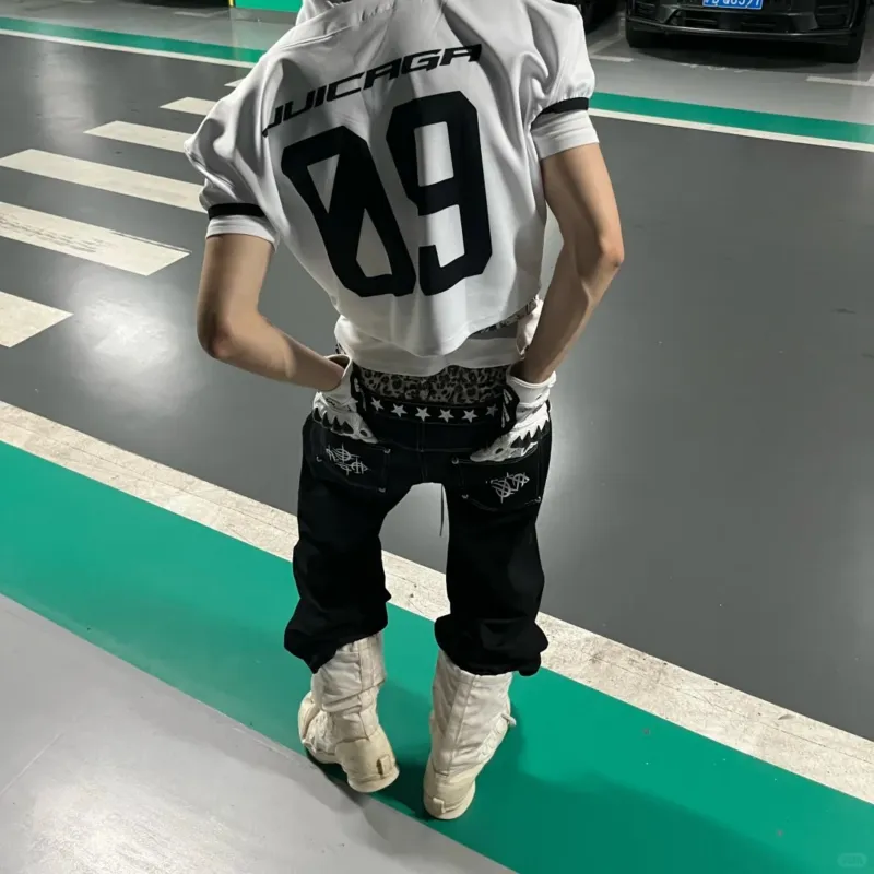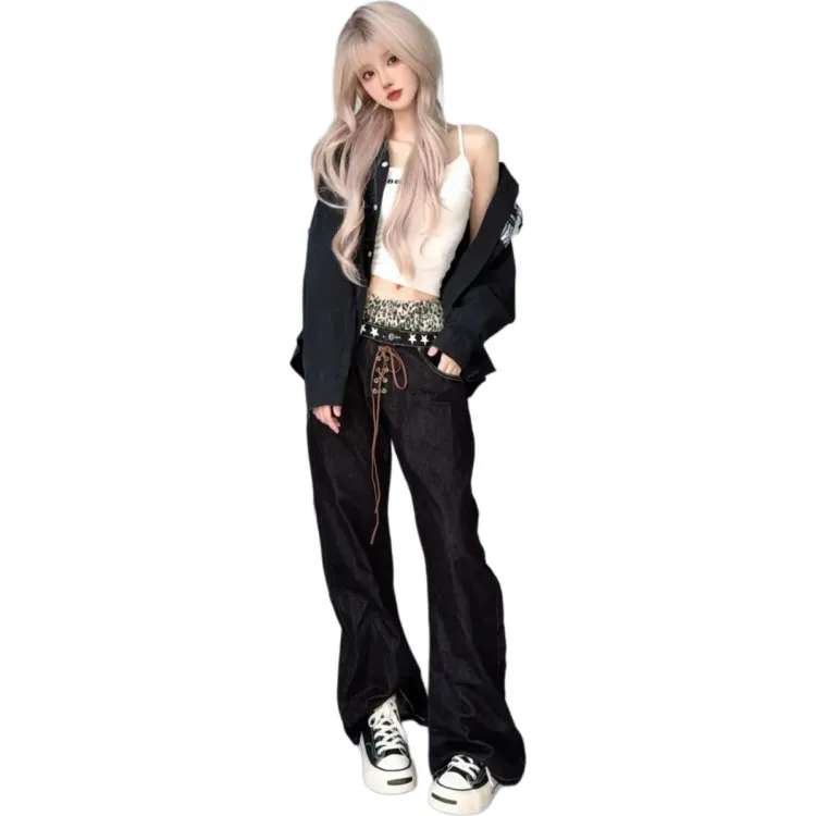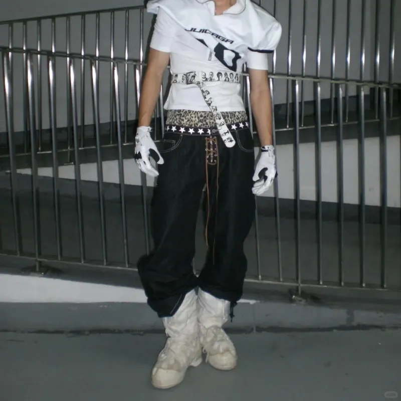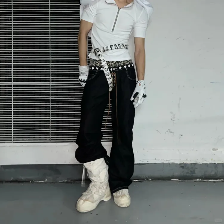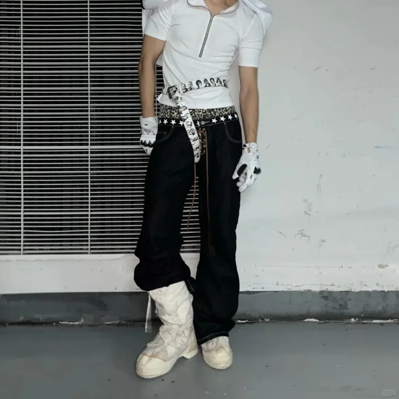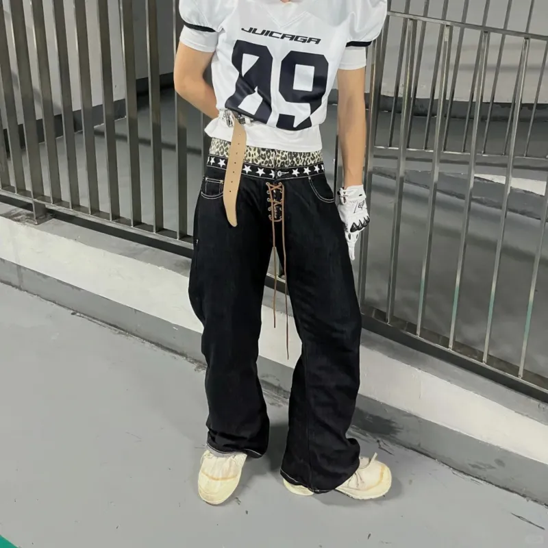 OKPI Черный Леопардовый принт Пэчворк Унисекс Джинсы
