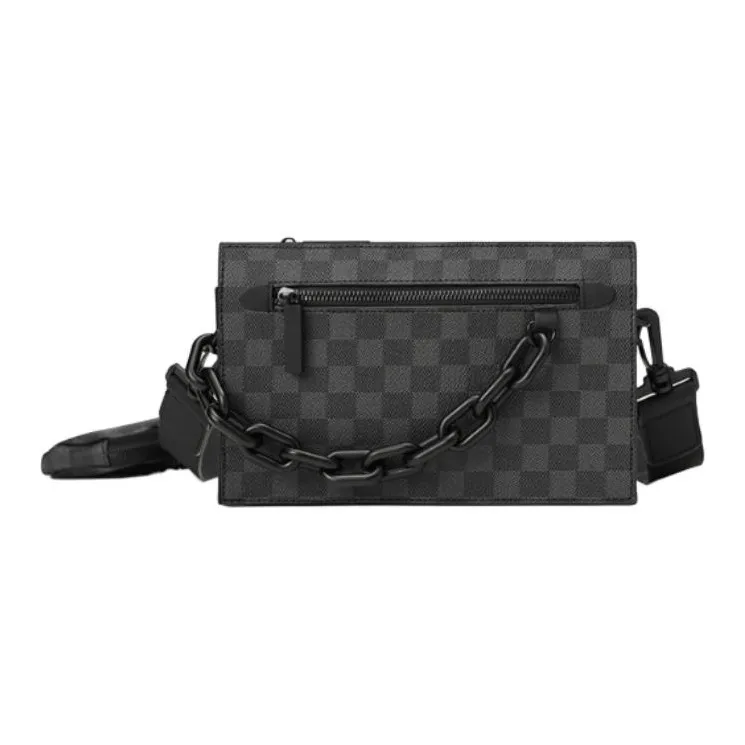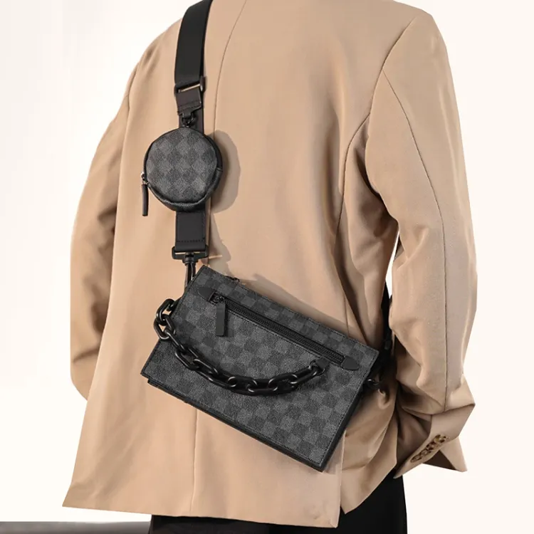 Old Man's Head Сумка через плечо из синтетической кожи стандартная мужская черная с шахматным узором