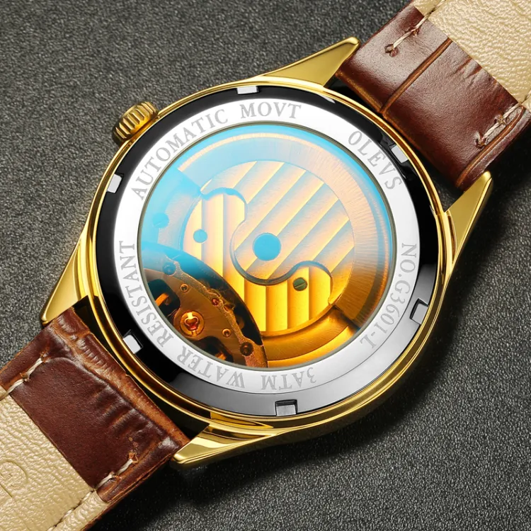 OLEVS Автоматический Механический Механизм ПУ (Полиуретан) Ремешок Часы Мужские Белый Циферблат