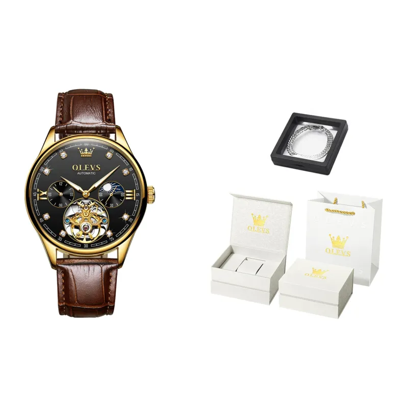 Цвет:Коричневая кожа, золотой корпус, черный циферблат [Роскошная коробка].