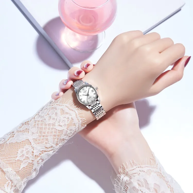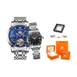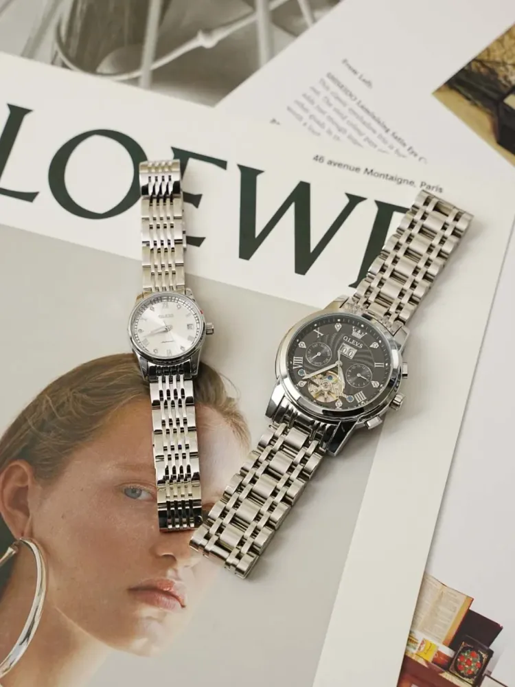 OLEVS Сердце к сердцу Knot Collection Механический механизм Ремешок из нержавеющей стали Часы Мужские часы