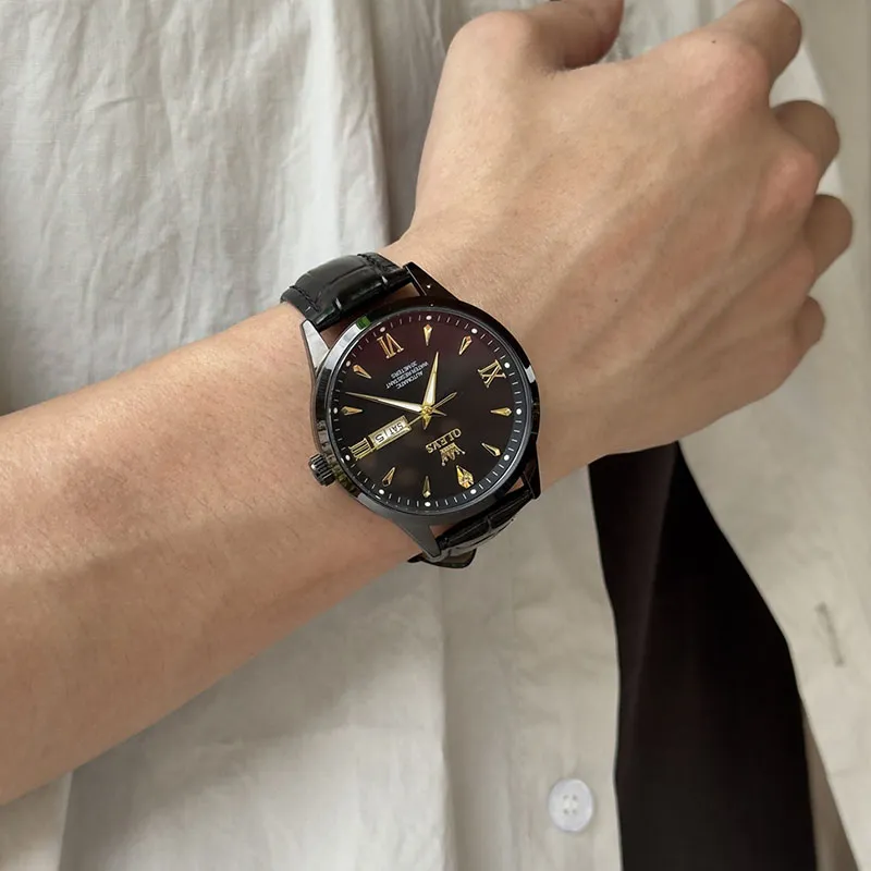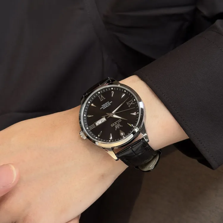 Черная кожа с черным циферблатом [стальной браслет + коробка]