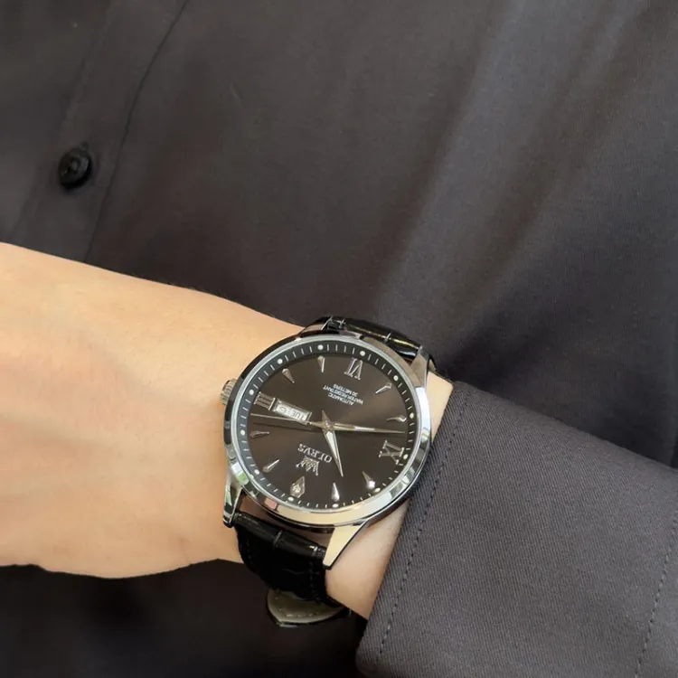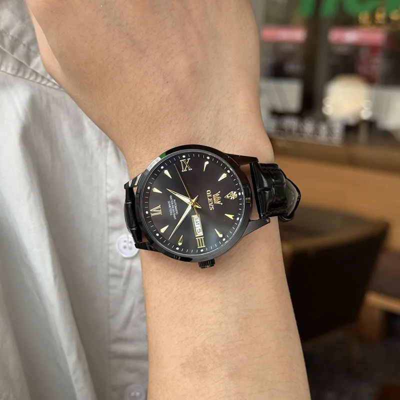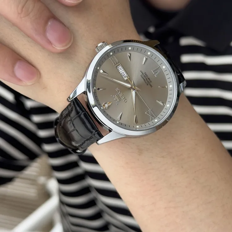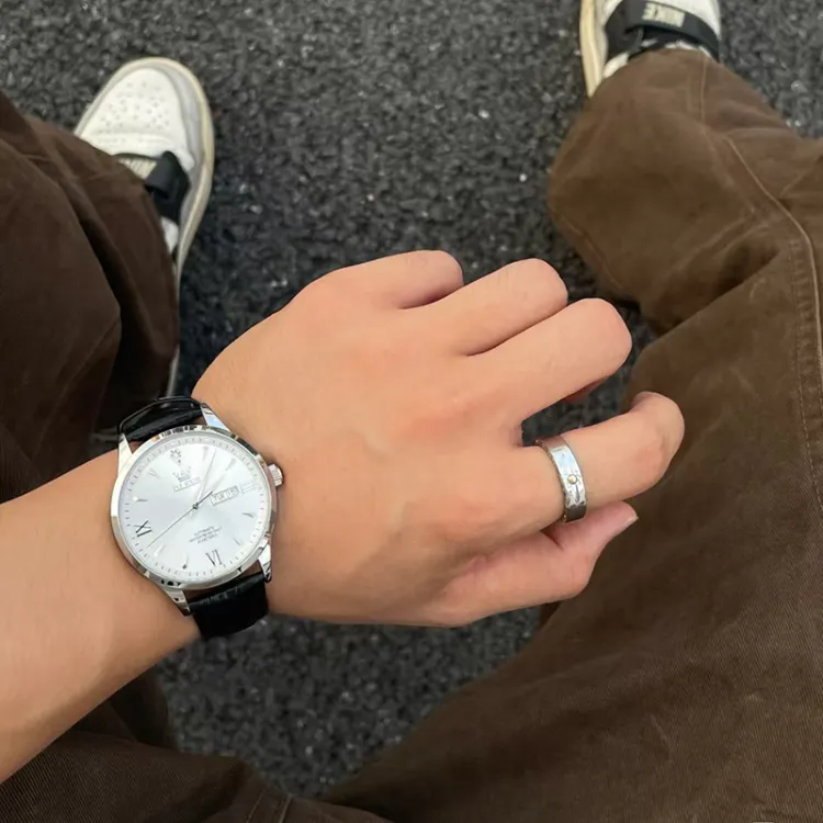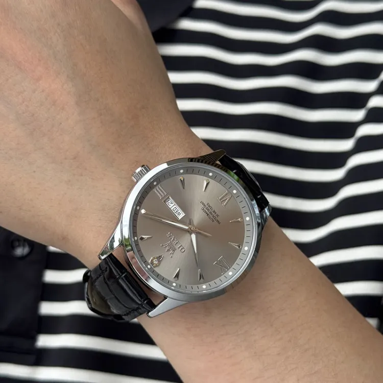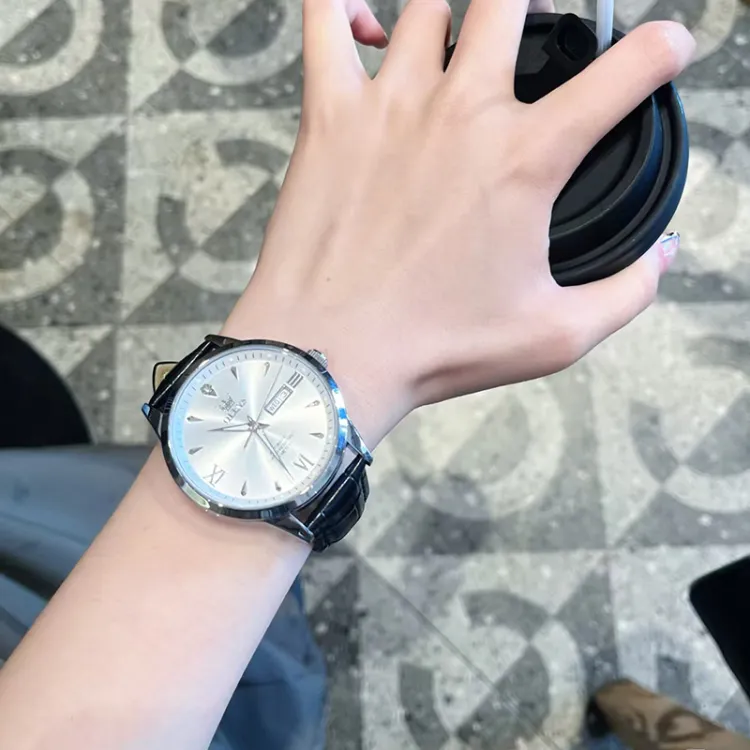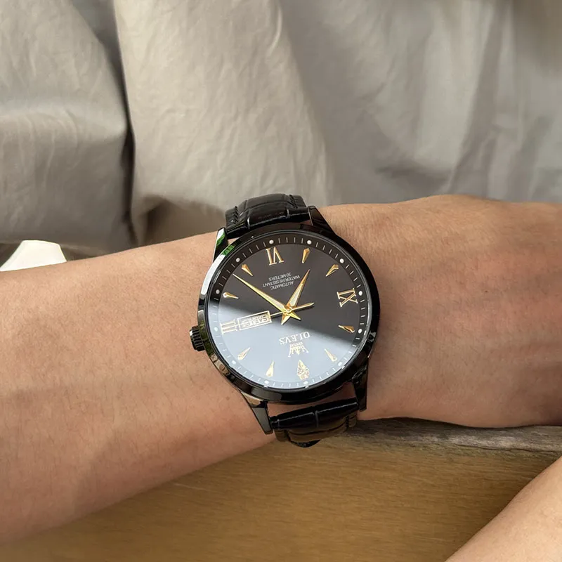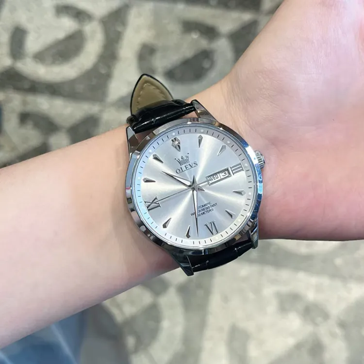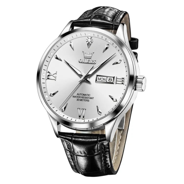 OLEVS Механические часы с кожаным ремешком белый циферблат мужские часы