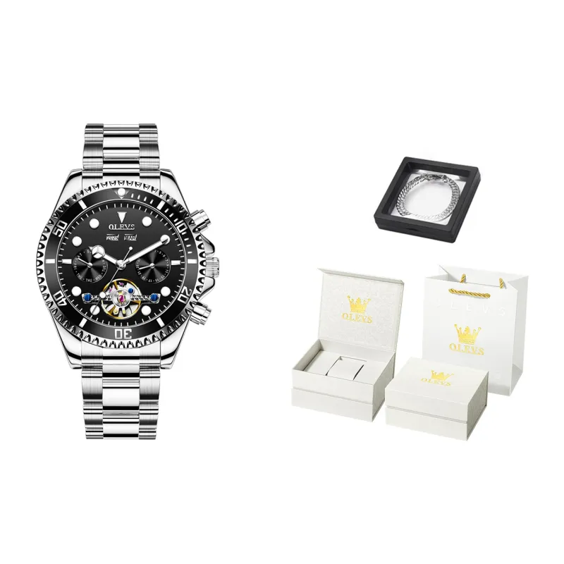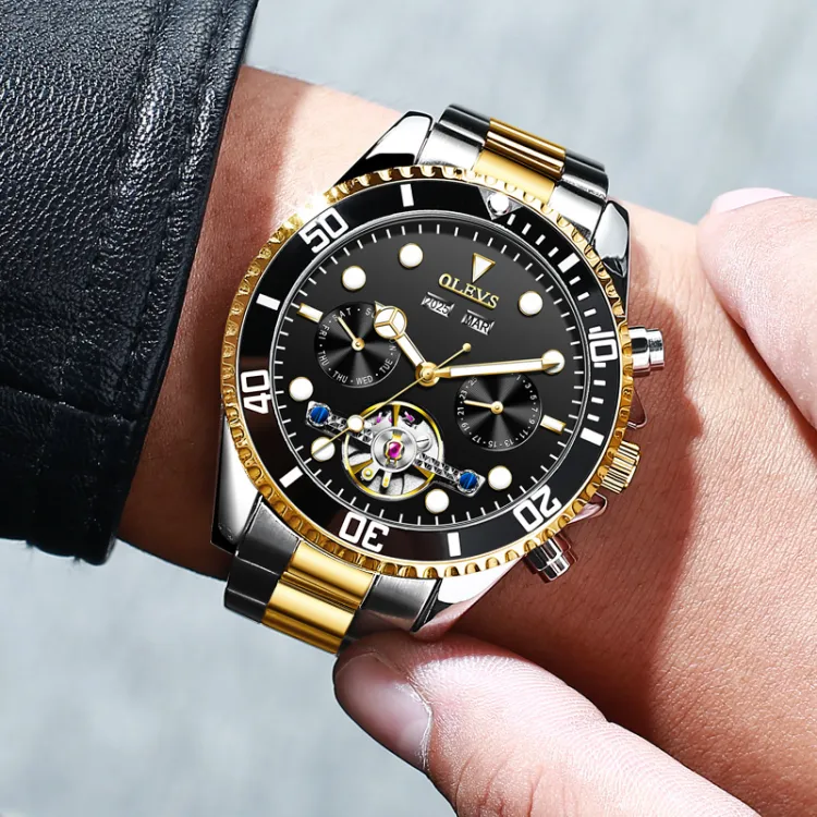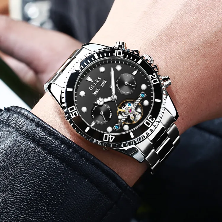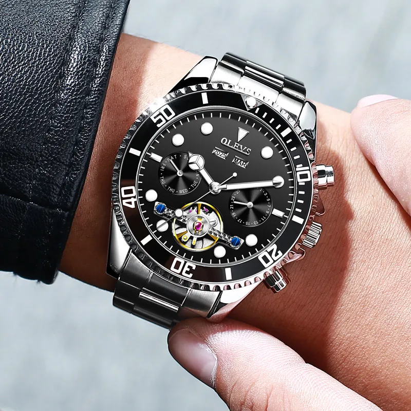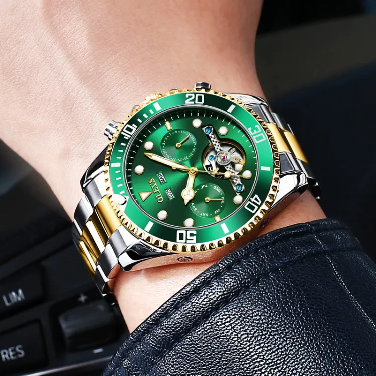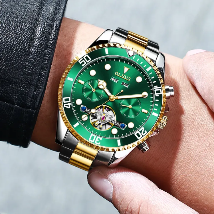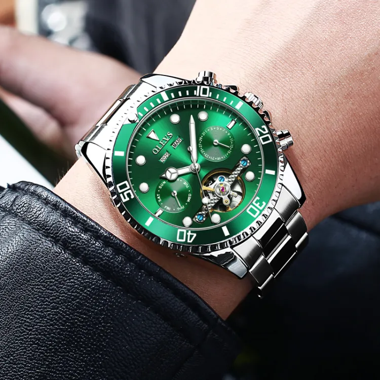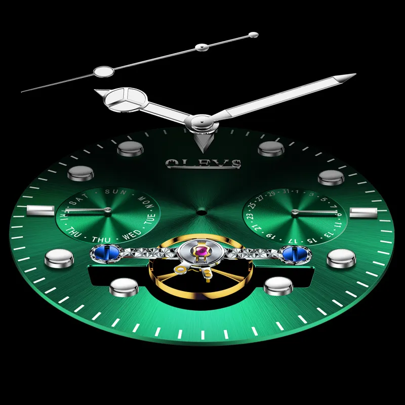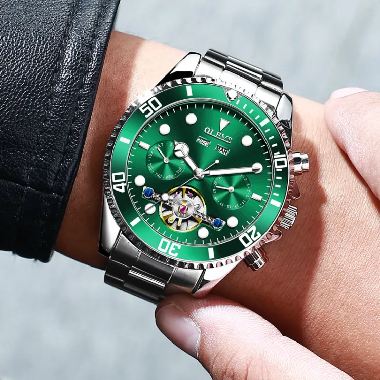 OLEVS Механический механизм ремешок из нержавеющей стали мужские часы зеленый циферблат