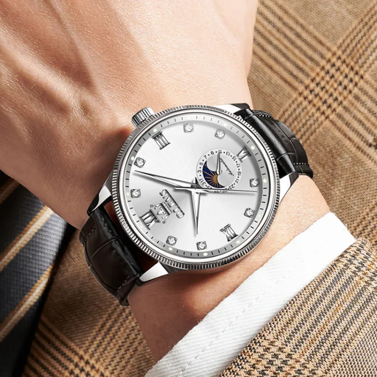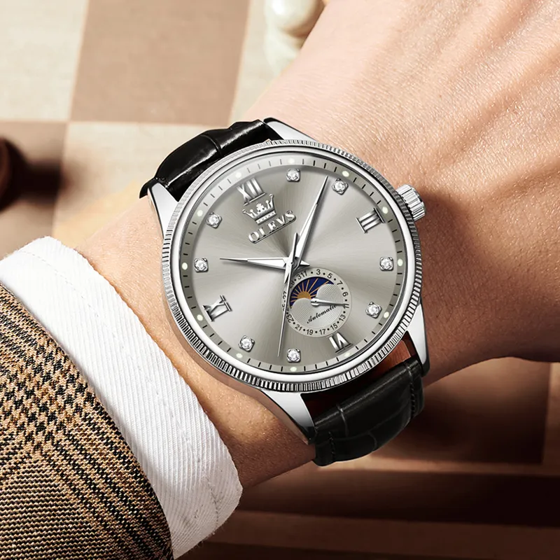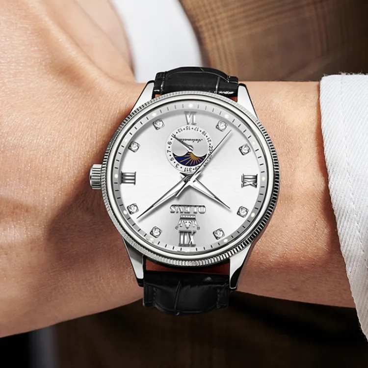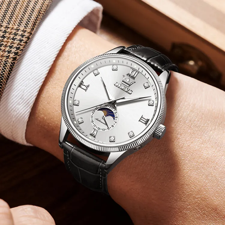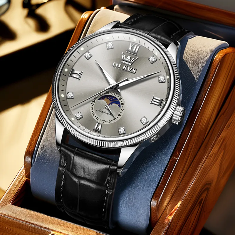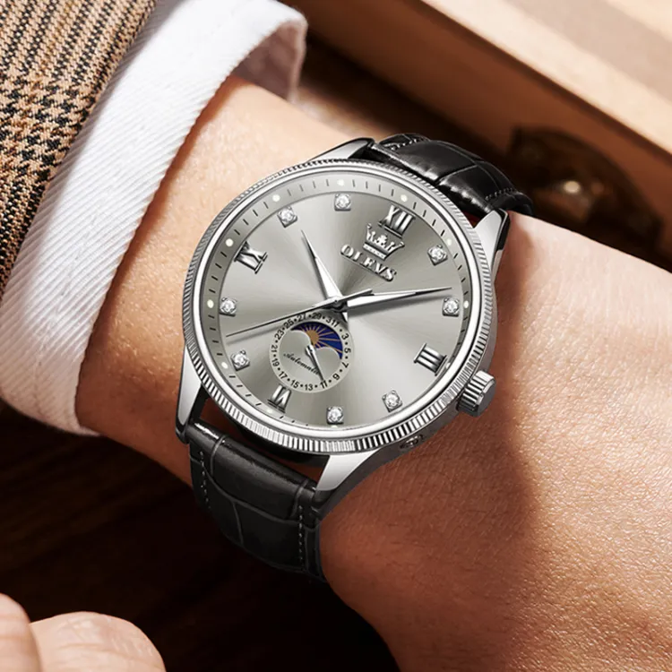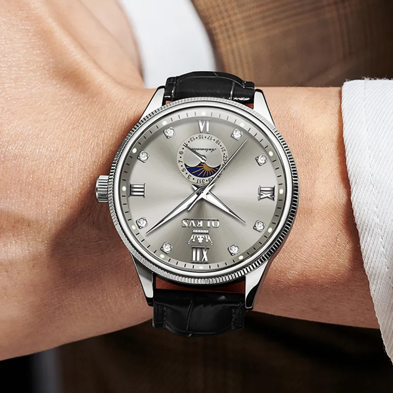 OLEVS Механические Мужские Часы Серебристый Циферблат