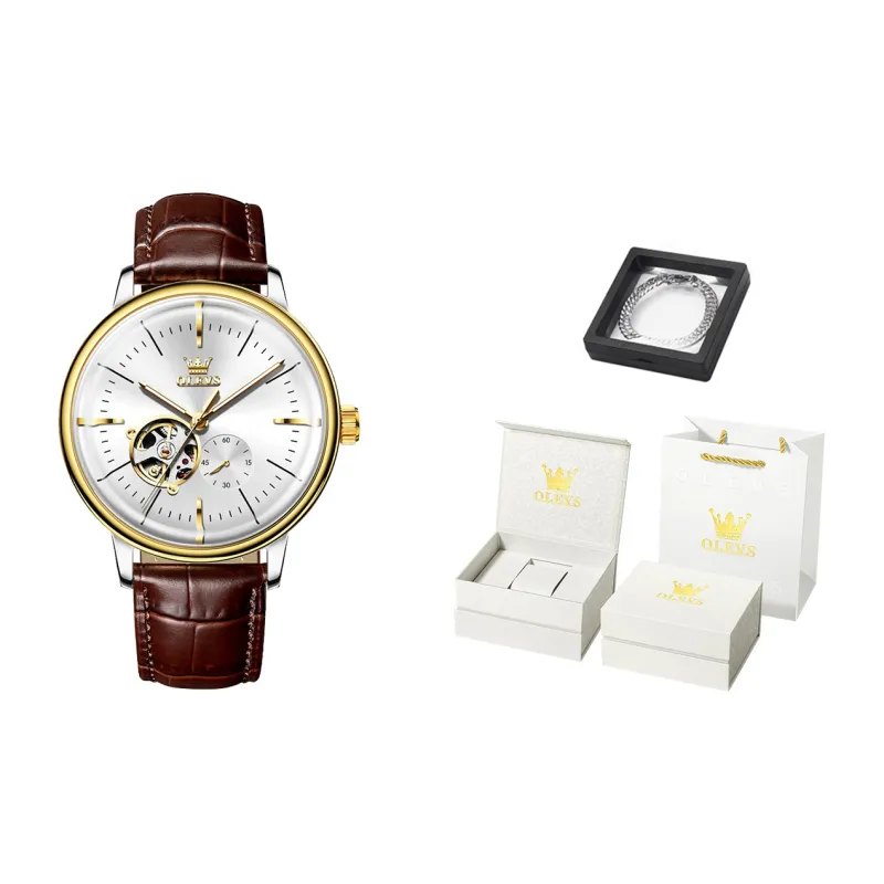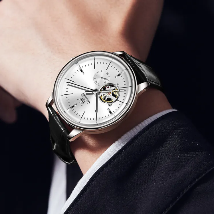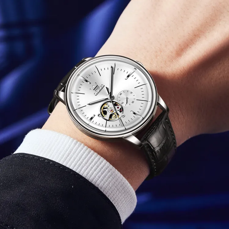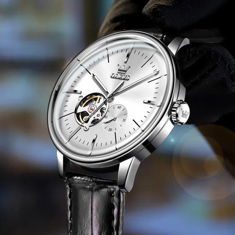 OLEVS Minimalist Series Автоматический Механический Механизм Часы Мужские Белый Циферблат