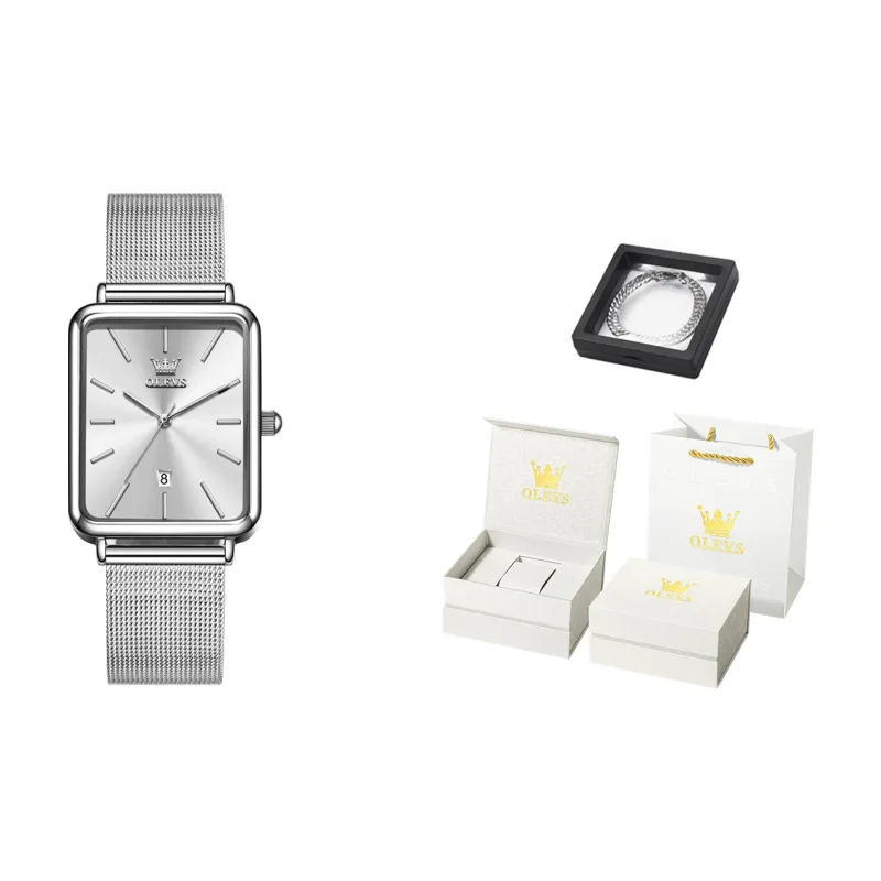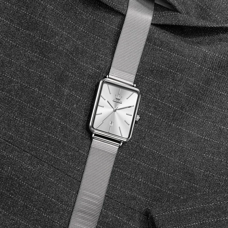 OLEVS Minimalist Series Кварцевый механизм Стальной ремешок Часы Мужские Белый циферблат