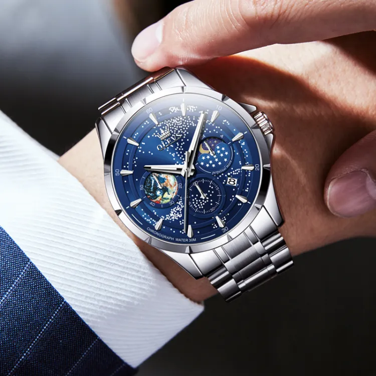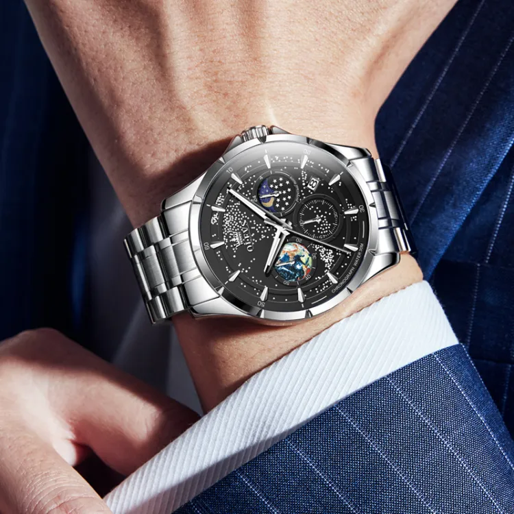 OLEVS Play The Cool Series Кварцевый механизм Часы Мужские Черный циферблат