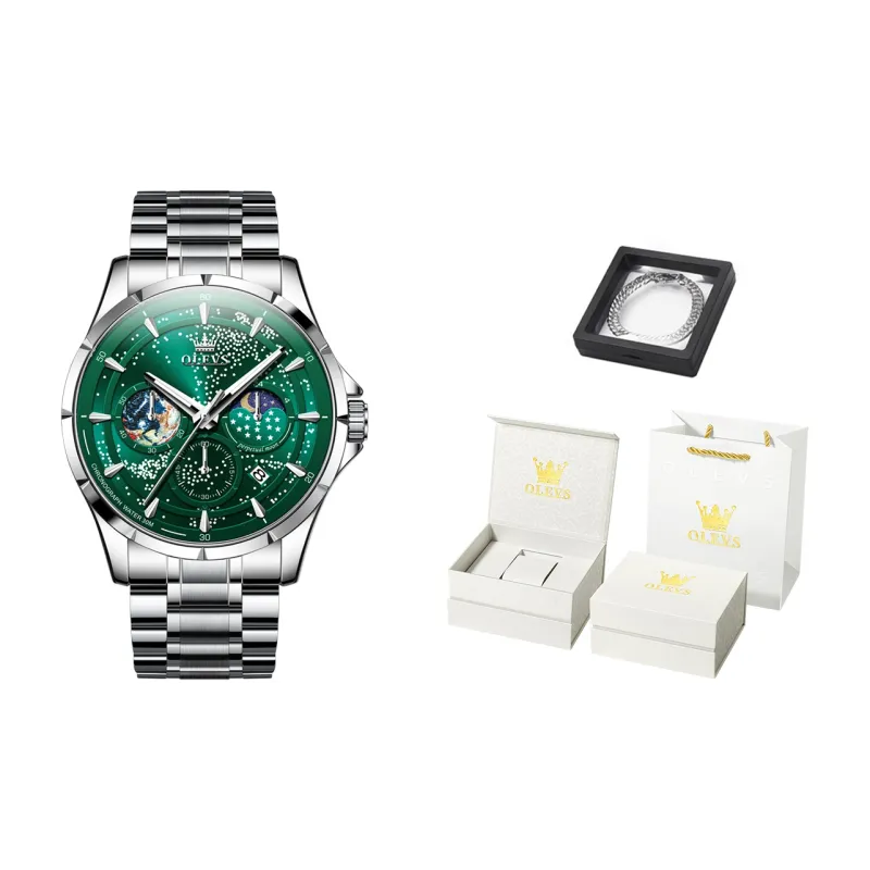 Комплект:Стальной браслет зеленый [Роскошная коробка]