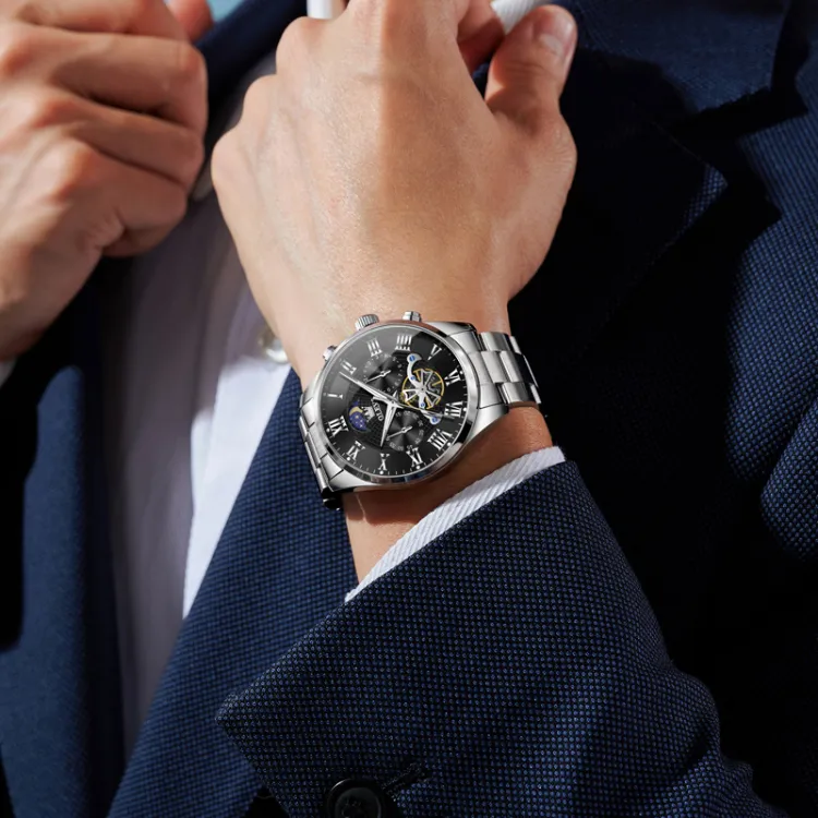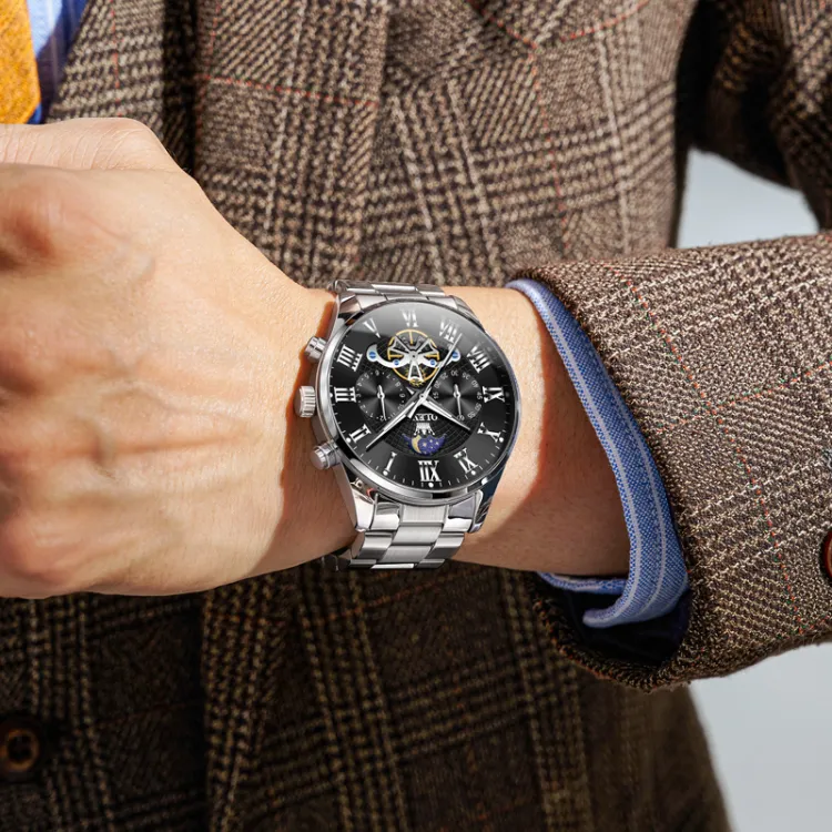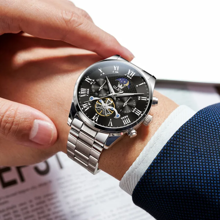 OLEVS Play The Cool Series Кварцевый механизм Часы Мужские Черный циферблат