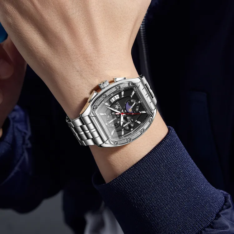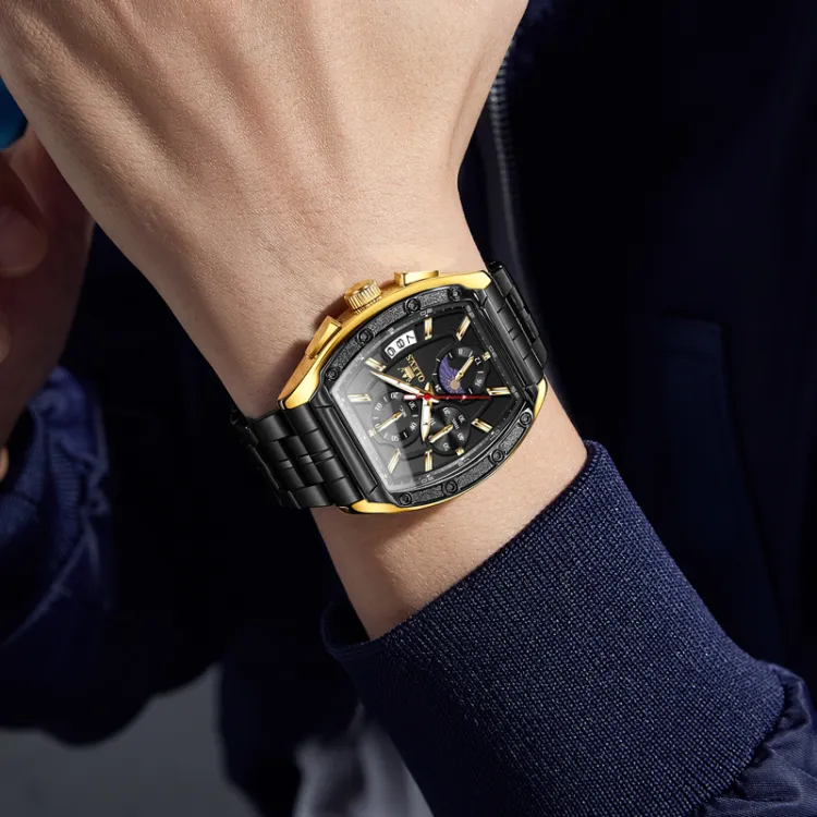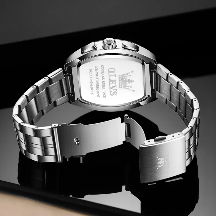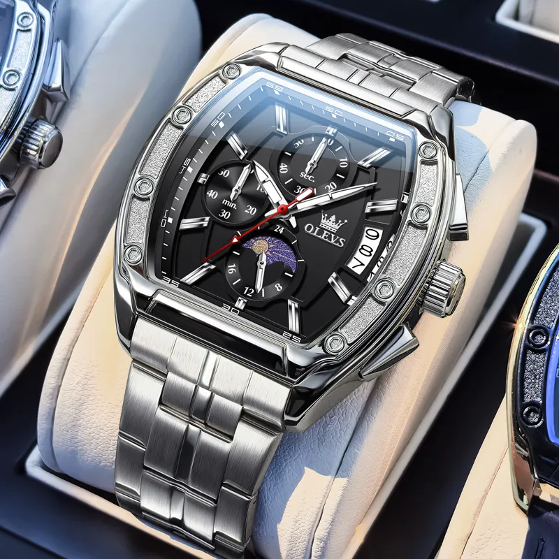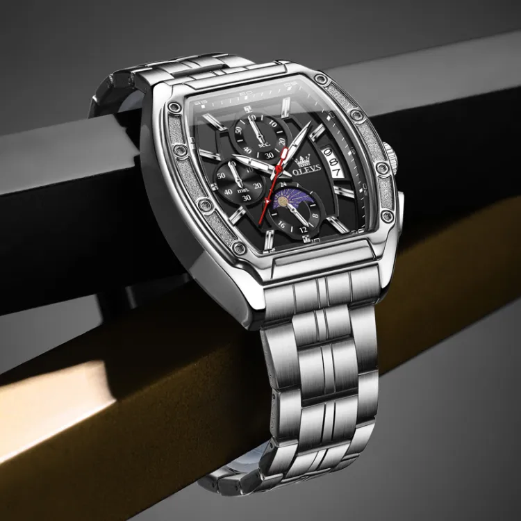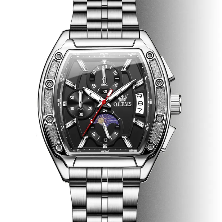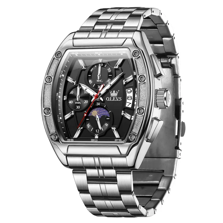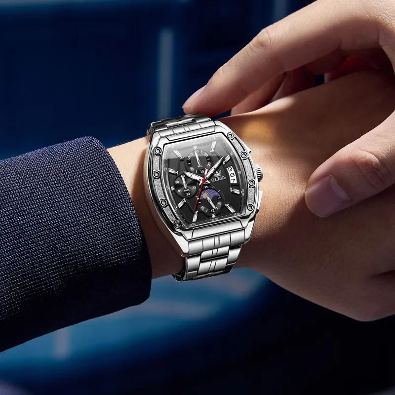 OLEVS Кварцевый механизм ремешок из нержавеющей стали мужские часы черный циферблат