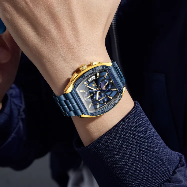 Стальной ремешок с синим циферблатом [Кожаный ремешок + Подарочная коробка]