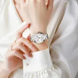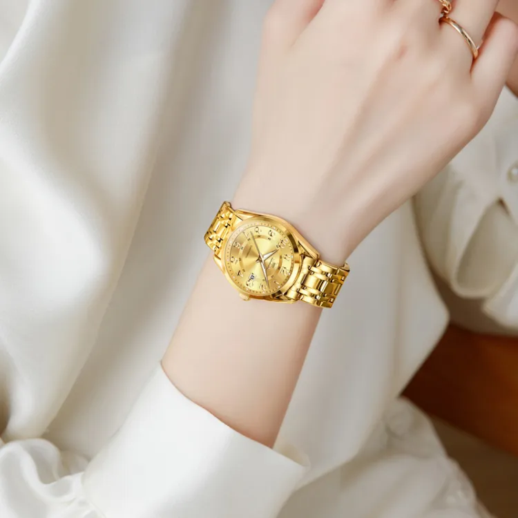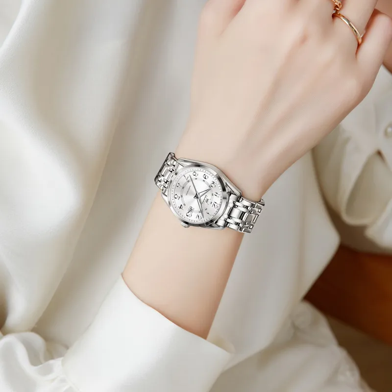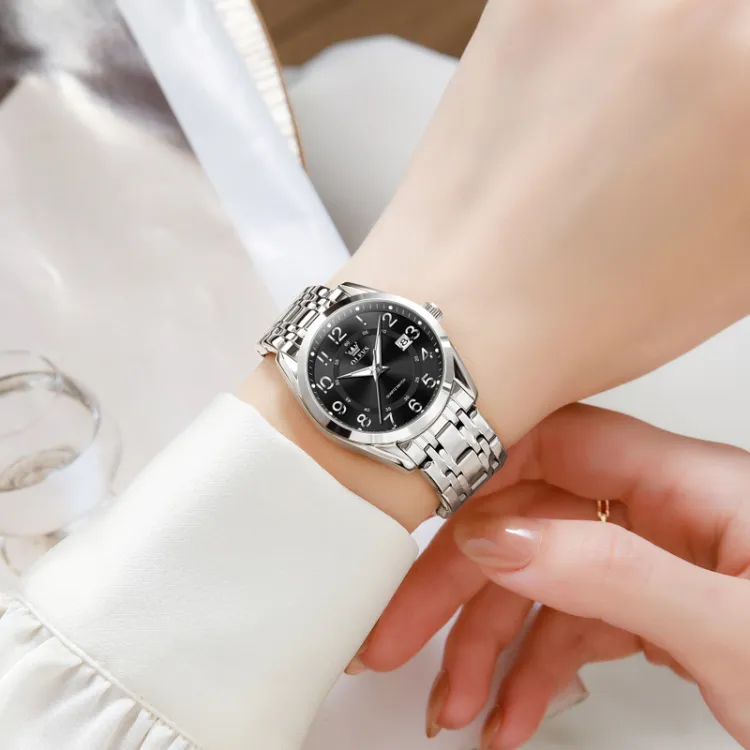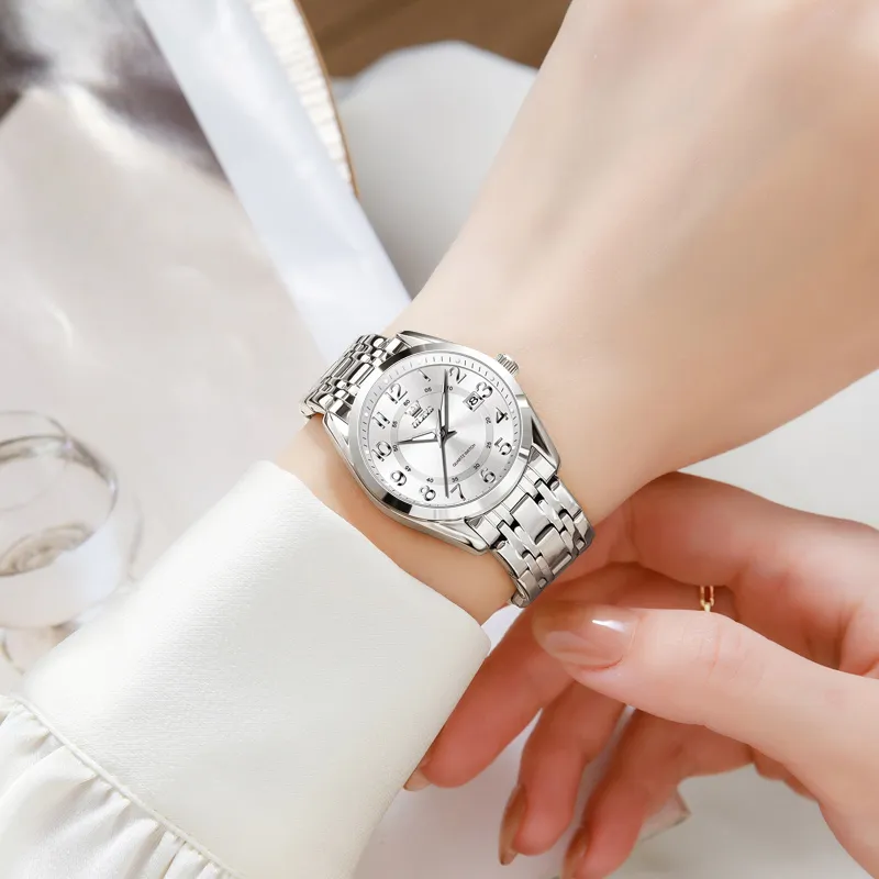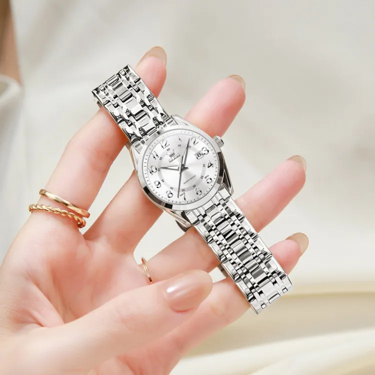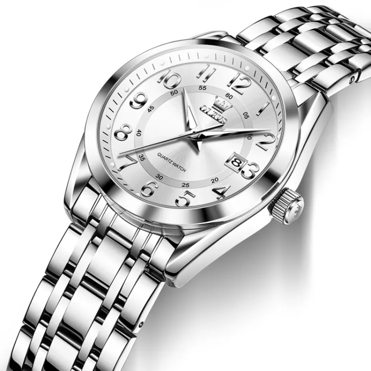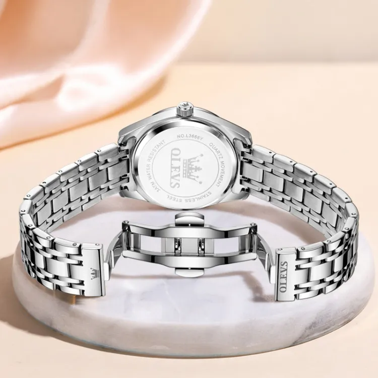 OLEVS Кварцевый механизм нержавеющая сталь ремешок часы женские белый циферблат