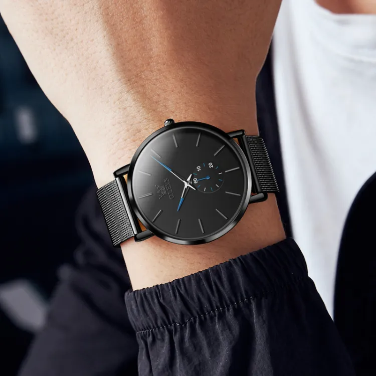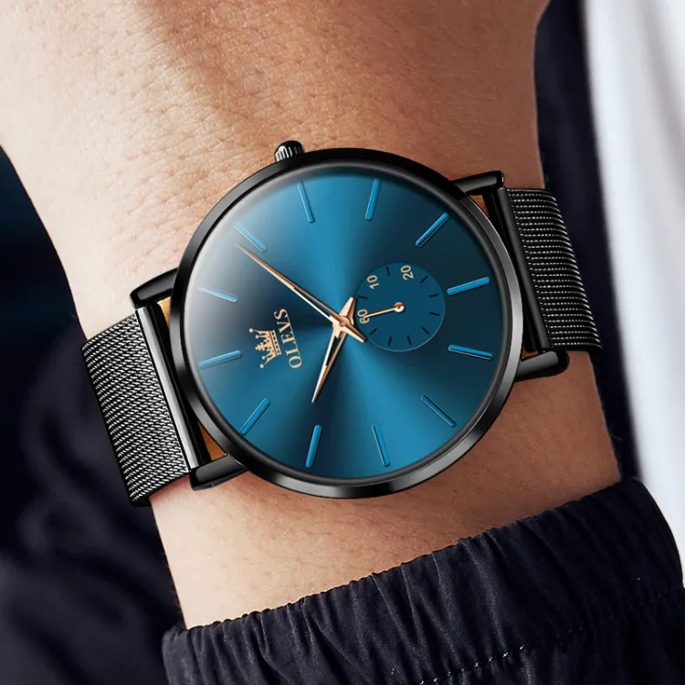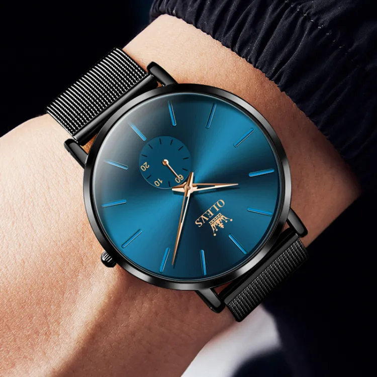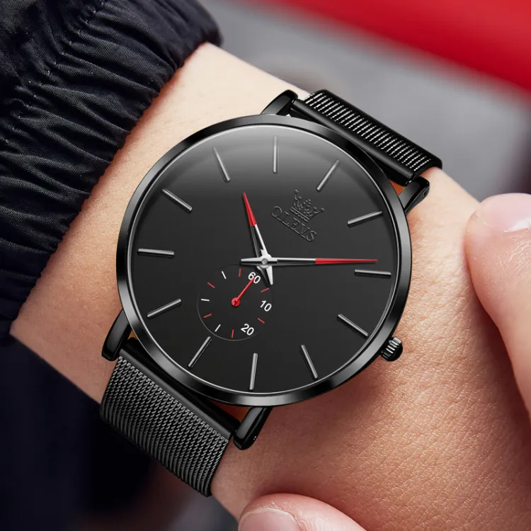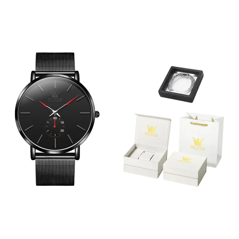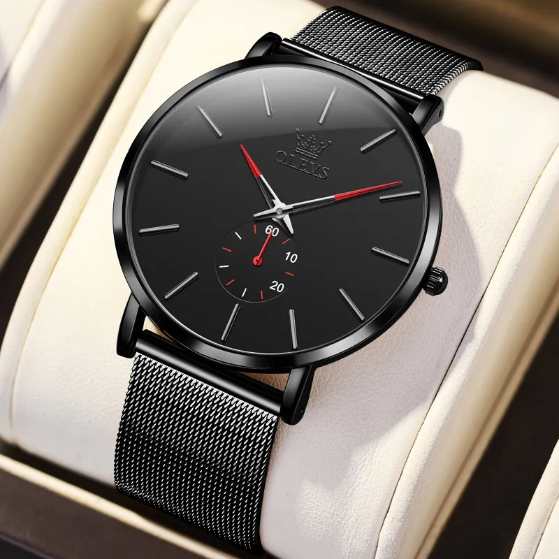 OLEVS Кварцевый механизм Часы Мужские Черный циферблат