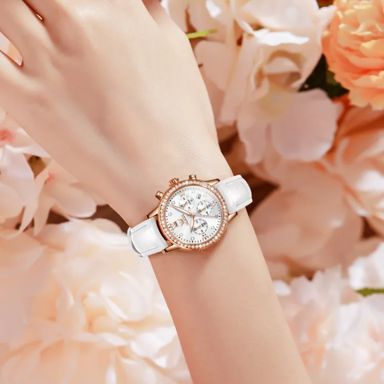 OLEVS Radiant Collection Кварцевый механизм ПУ (полиуретан) Ремешок Часы Женские Белый циферблат
