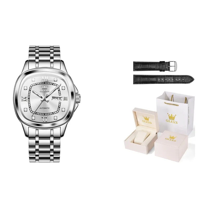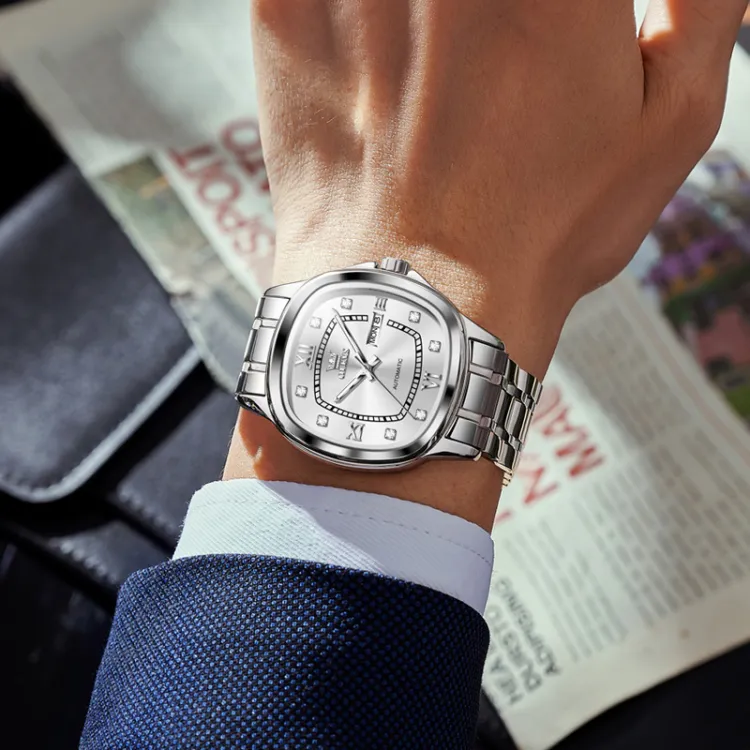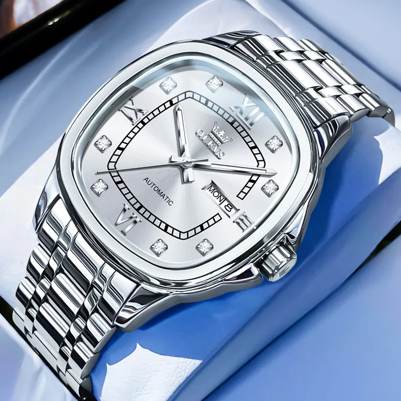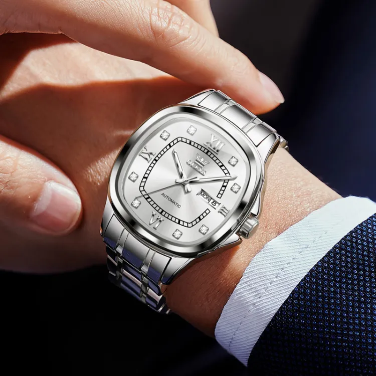 OLEVS Wisdom Series Механический механизм ремешок из нержавеющей стали мужские часы серебристый циферблат