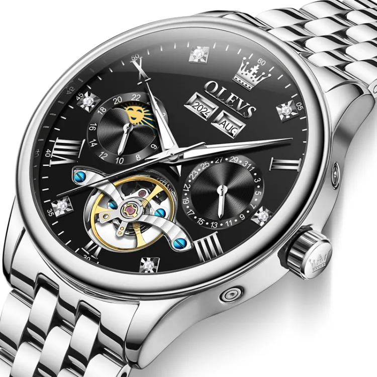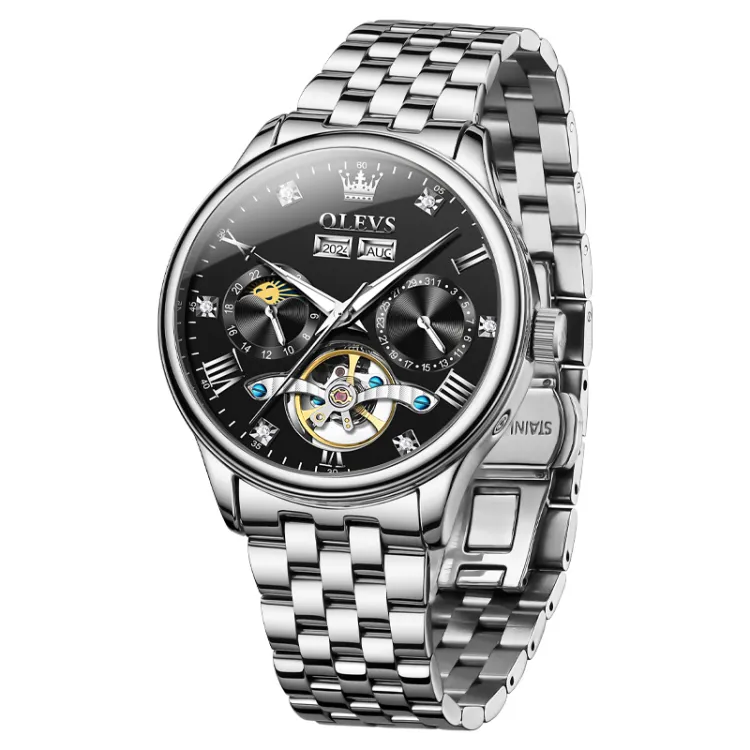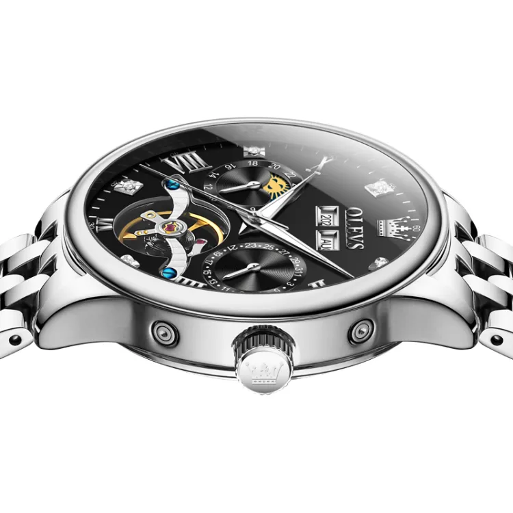 OLEVS Wisdom Series Механические Мужские Часы Черный Циферблат