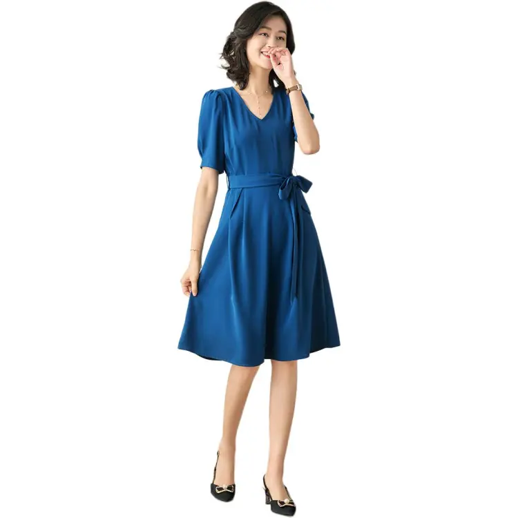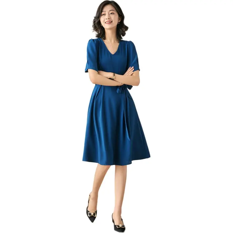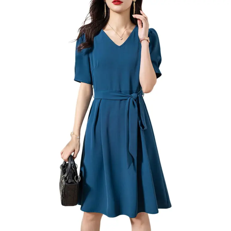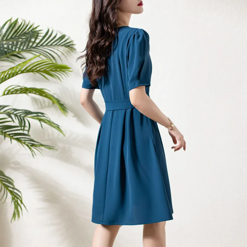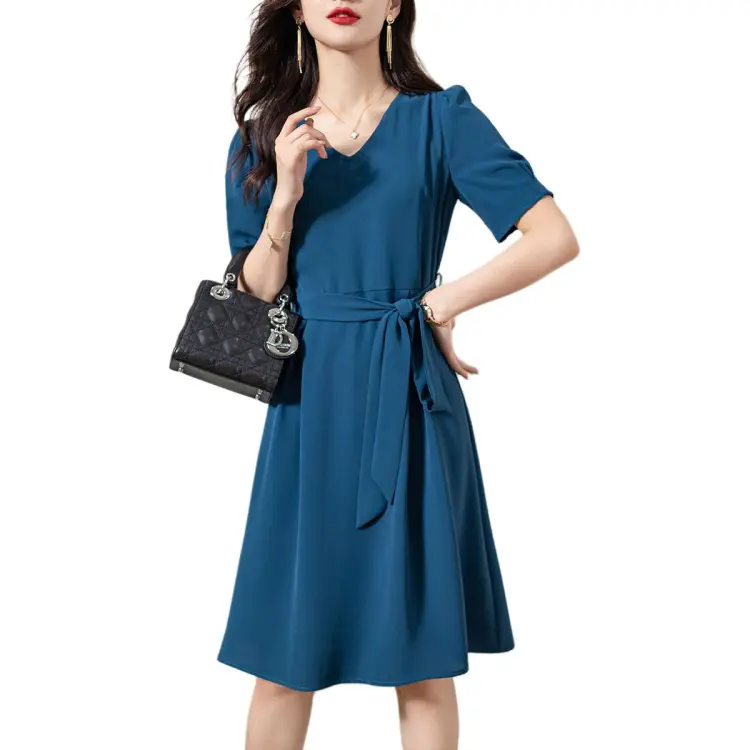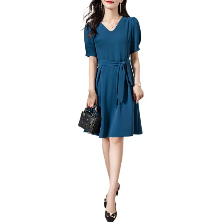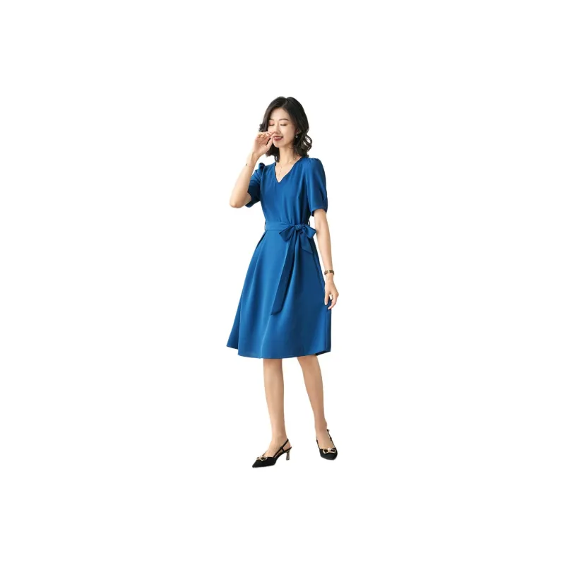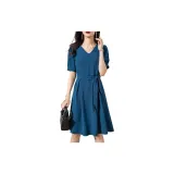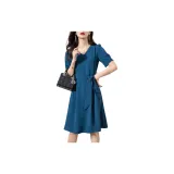 OLiSi Короткое платье с короткими рукавами женское синий зеленый