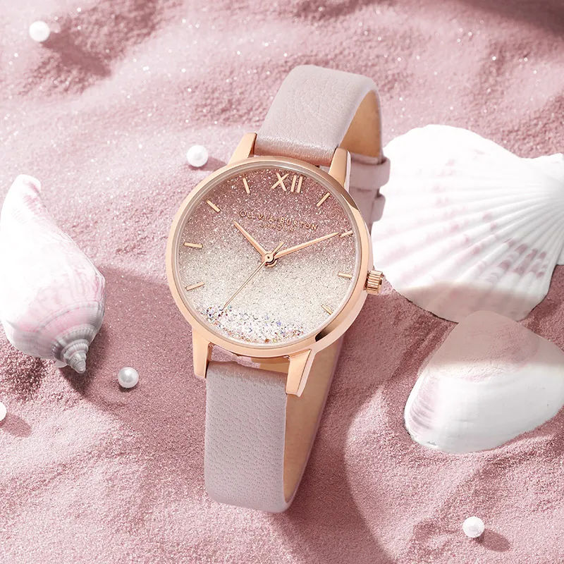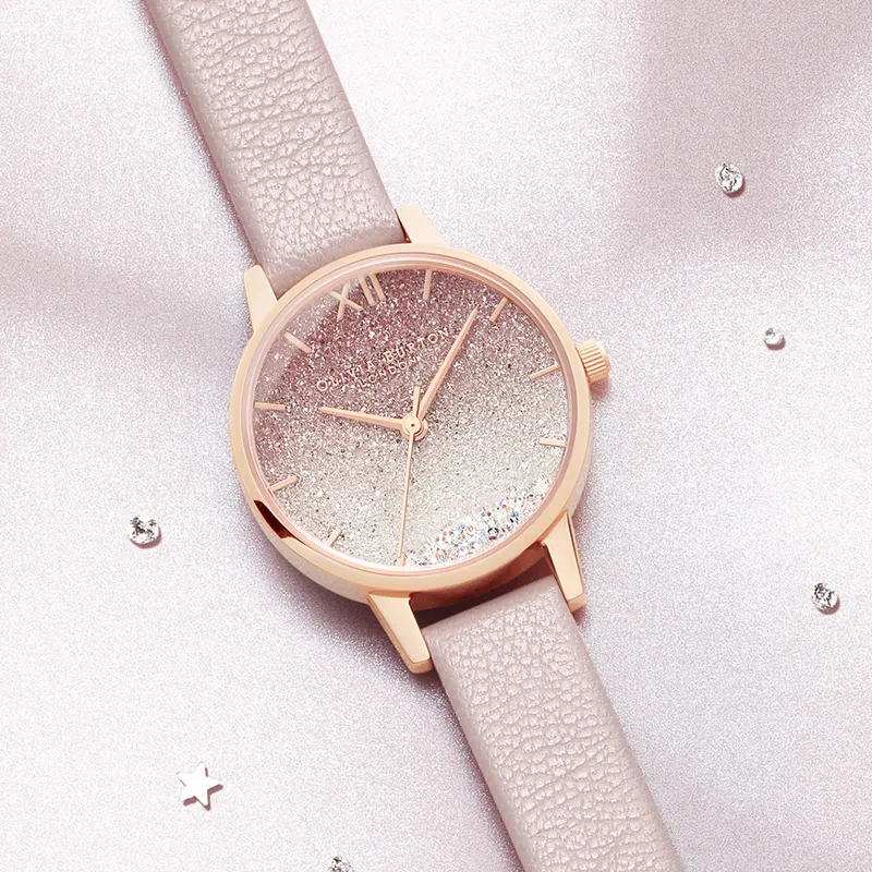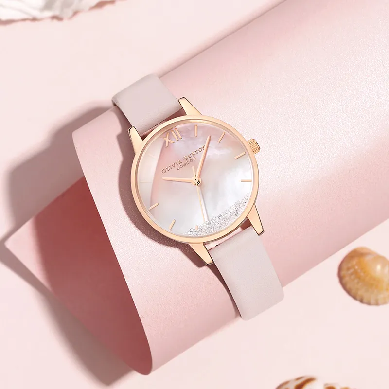 OLIVIA·BURTON Наручные часы Кварцевый механизм Кожаный ремешок 30MM Розовый циферблат Женские часы OB16US57+OB16US64