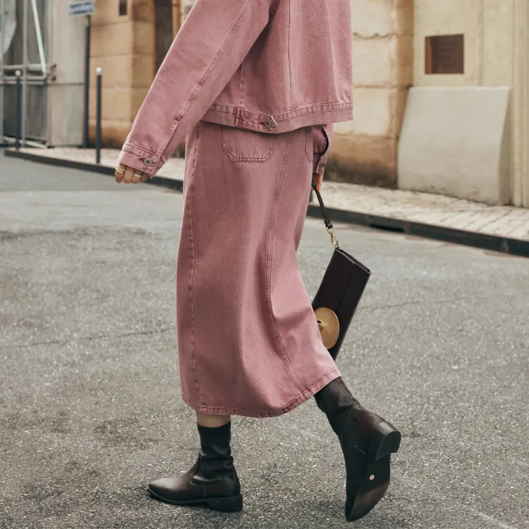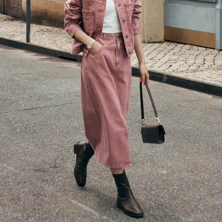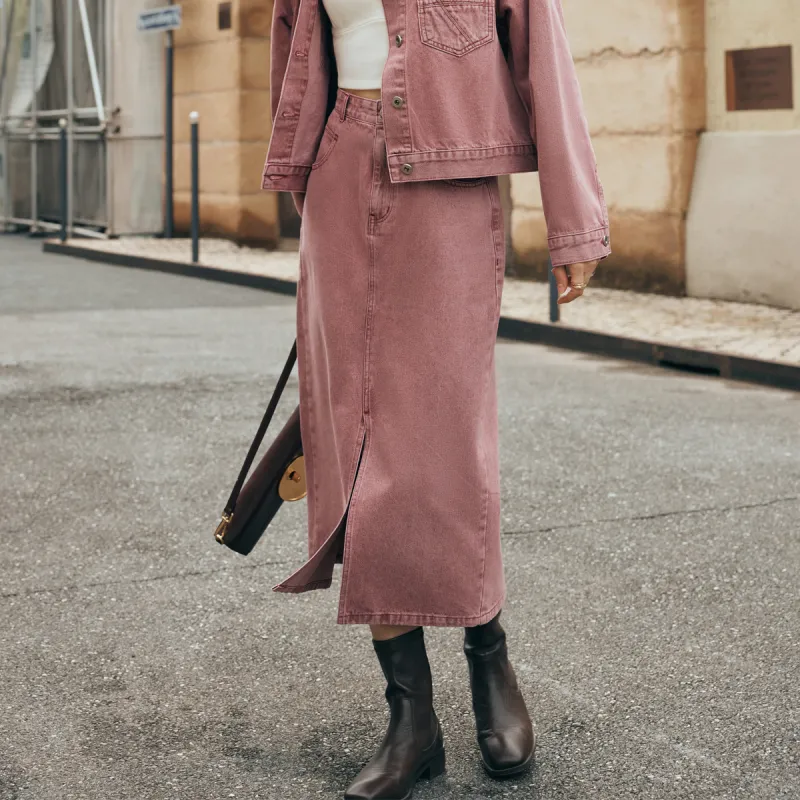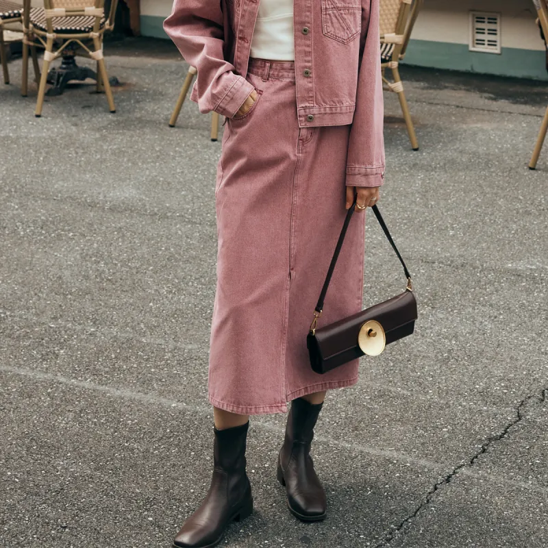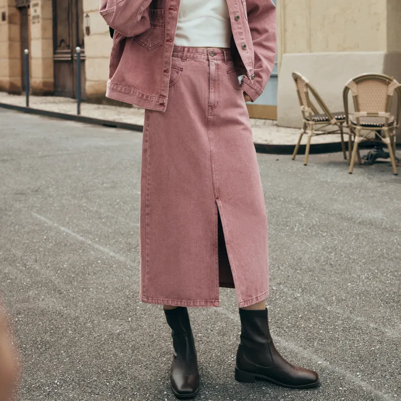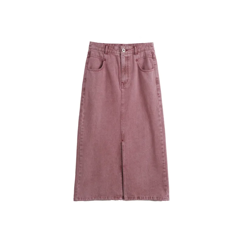 Olrain Деним Длинная Юбка Женская Розовая