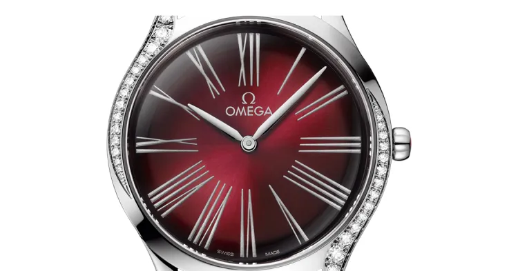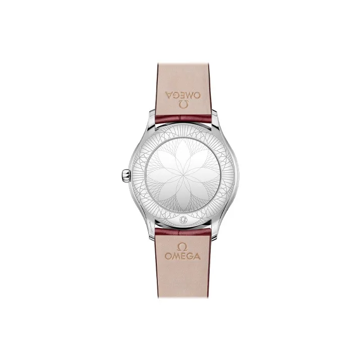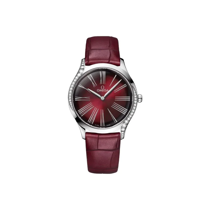 OMEGA Flying Series Name Classics Кварцевый механизм Женские часы 36 мм Красный циферблат Корпус из нержавеющей стали Кожаный ремешок