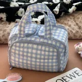 Синий, клетка [большой объем], отделение для макияжа, сумка