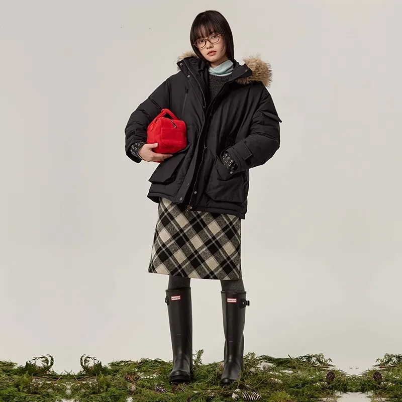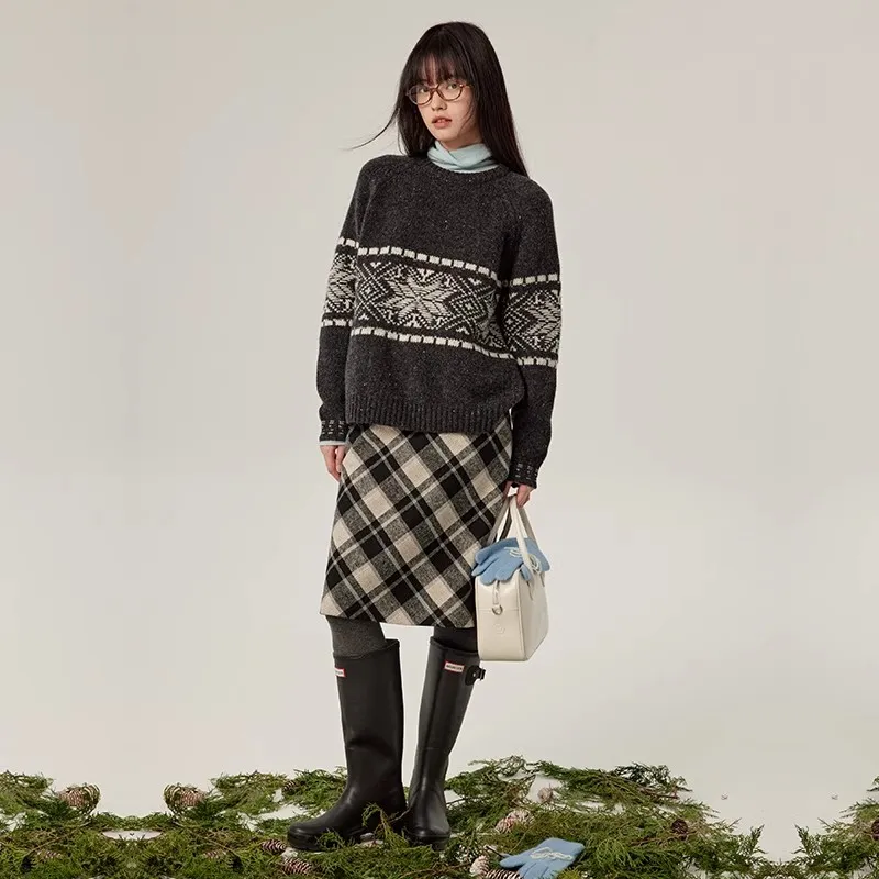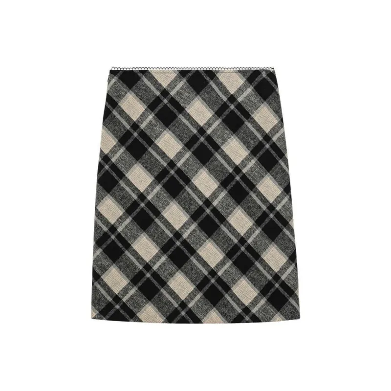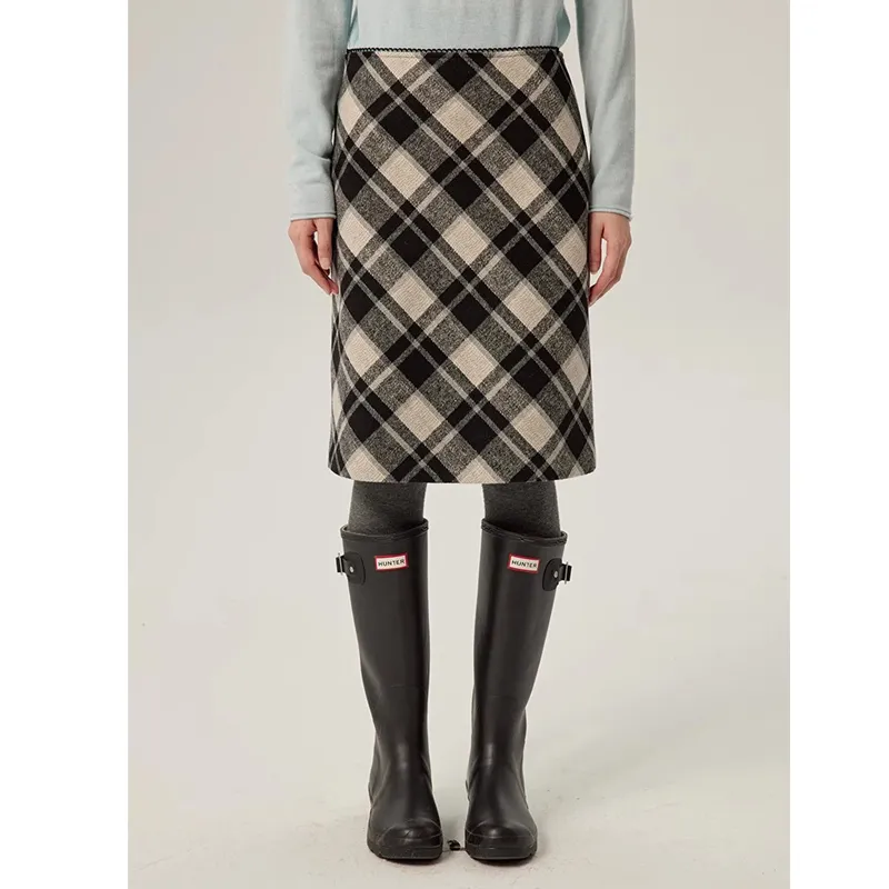Omont Повседневный Длинный Юбка Женская Черный Белый Клетка