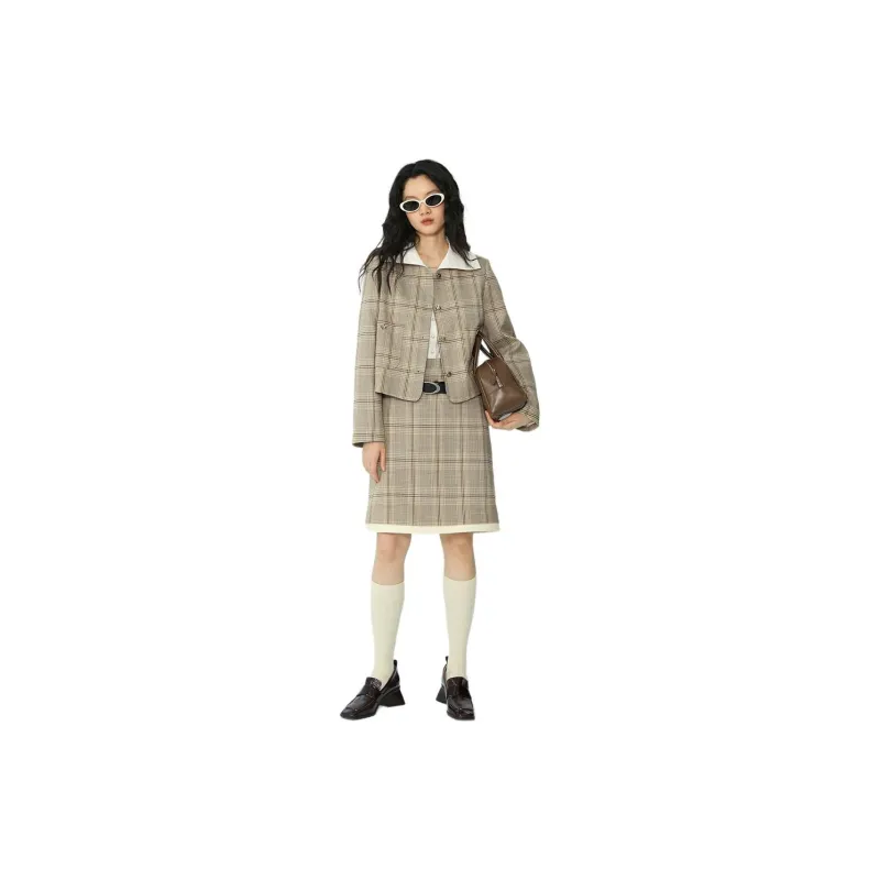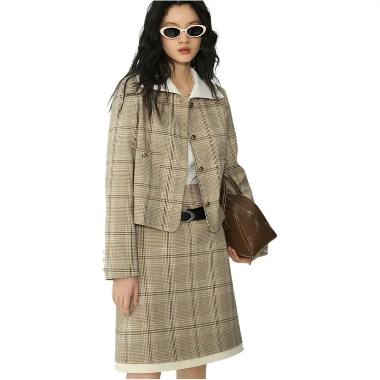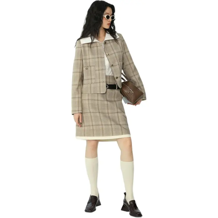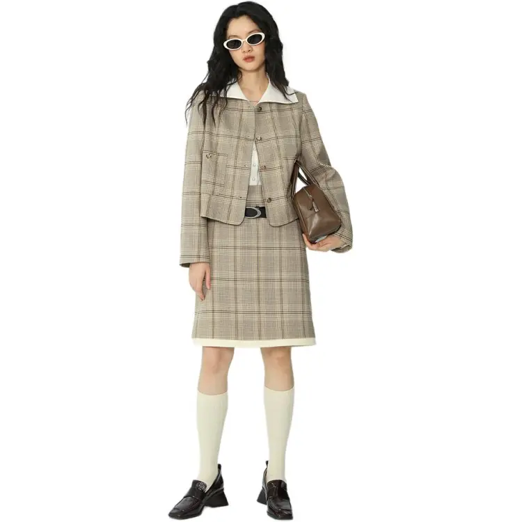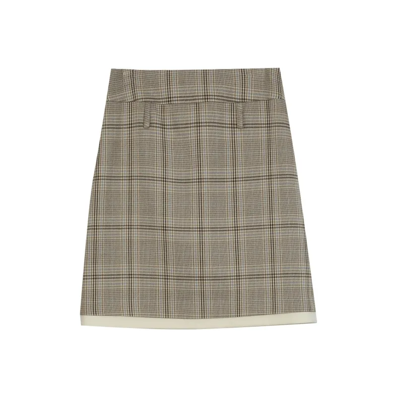 Omont Повседневные короткие юбки женские хаки клетка