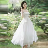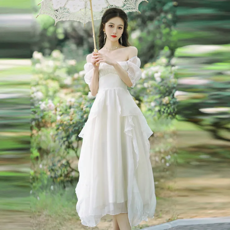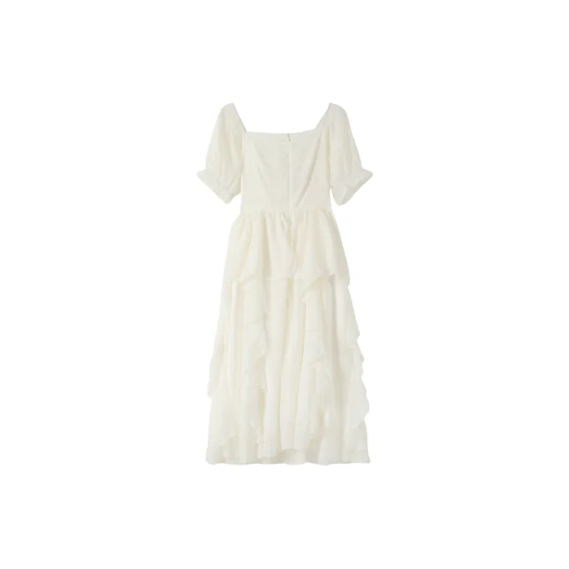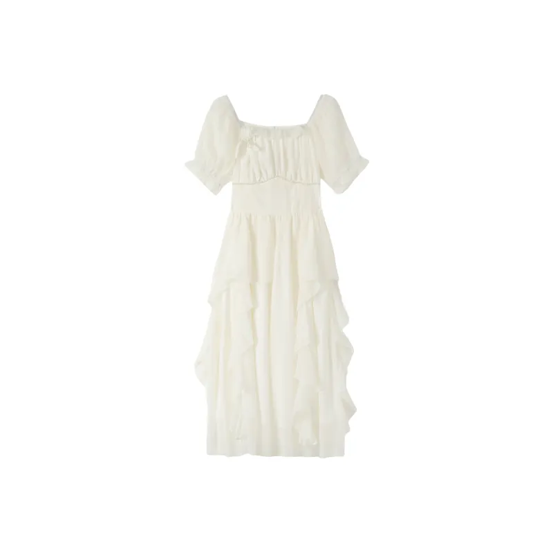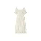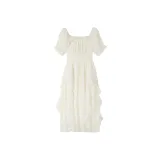 ONE PASS STUDIO Короткий рукав Платье Женское Абрикосовый Белый