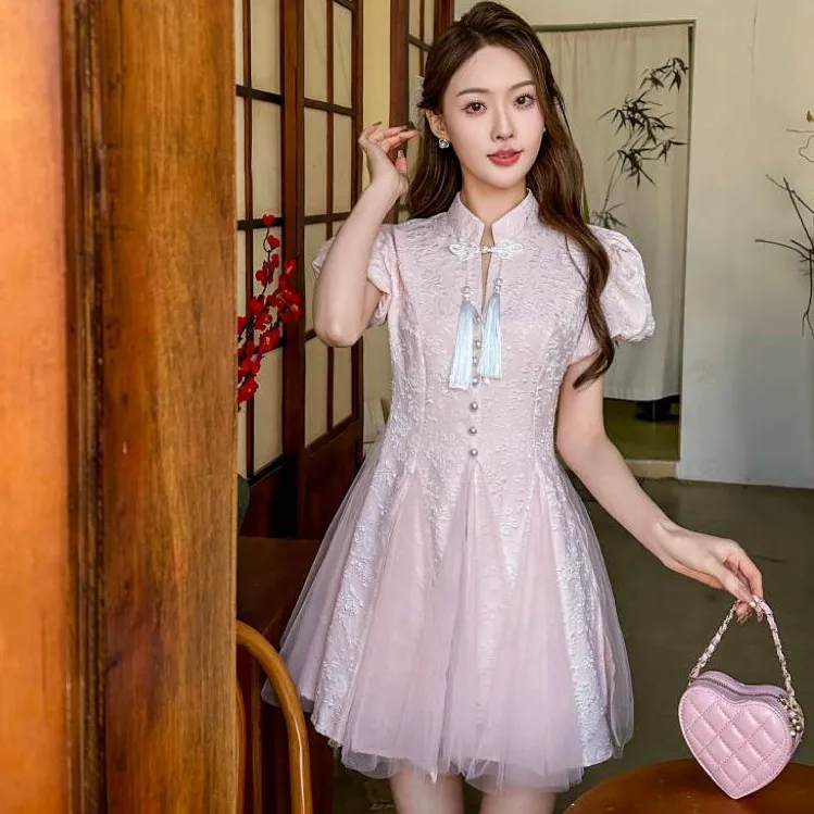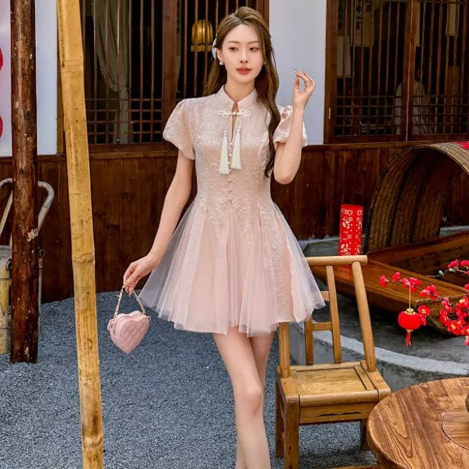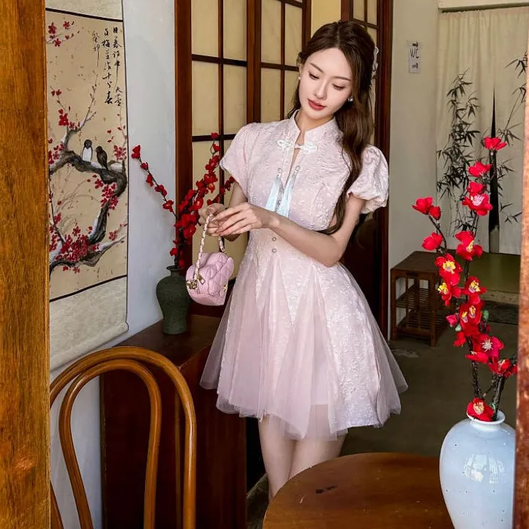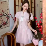 ONE PASS STUDIO Короткий рукав Платье Женское Розовое