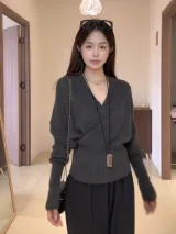 ONENINE34PM Темно-серый свитер женский трикотаж